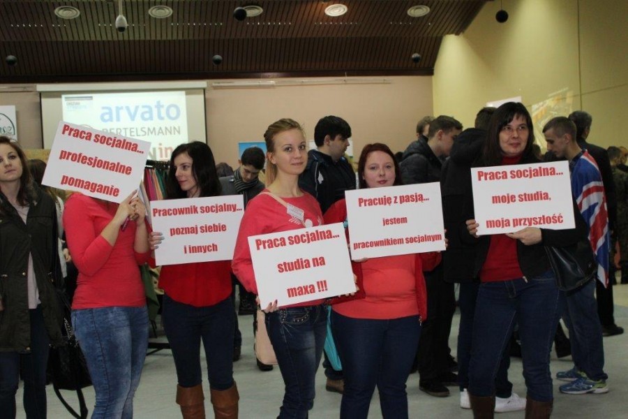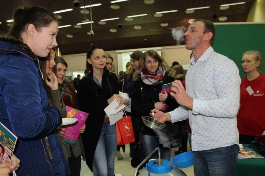 Tego dnia centrum uczelni mieściło się w auli i jej okolicach, gdzie swoje stoiska przygotowały wszystkie kierunki, ale też samorząd studencki, Biuro Rekrutacji, Akademickie Centrum Językowe. Z wielkiego ekranu młodzież przywitał prof. Mirosław Pawlak, rektor PWSZ w Koninie, i zachęcał do studiowania na jedynej w Koninie państwowej, a więc bezpłatnej uczelni.