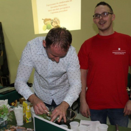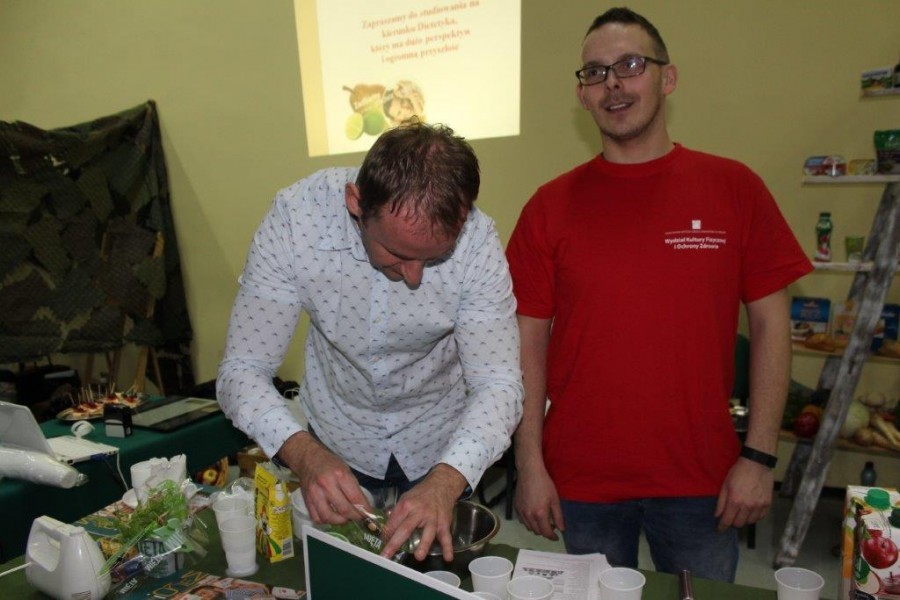 Poza tym przy każdym ze stoisk coś się działo. Wuefiści zapraszali do sprawdzania wydolności organizmu na stacjonarnym rowerku, dietetycy karmili mrożoną ciekłym azotem śmietaną, czyli miętowymi lodami. Mechanicy drukowali na drukarce 3D czerwone trybiki, z których można było robić wielościenne układanki. Energetycy, zapytani jak przekonują maturzystów do studiowania tej dziedziny mówili, że nie ma przyszłości bez prądu, bo bez niego nawet internet padnie. ‒ Nie ma lepszego argumentu ‒ uznali. Fizjoterapeuci masowali, a studenci z bezpieczeństwa wewnętrznego pracowicie robili show, czyli pokazy sztuk walki przy stale oblężonej przez widzów „arenie” z materaców.