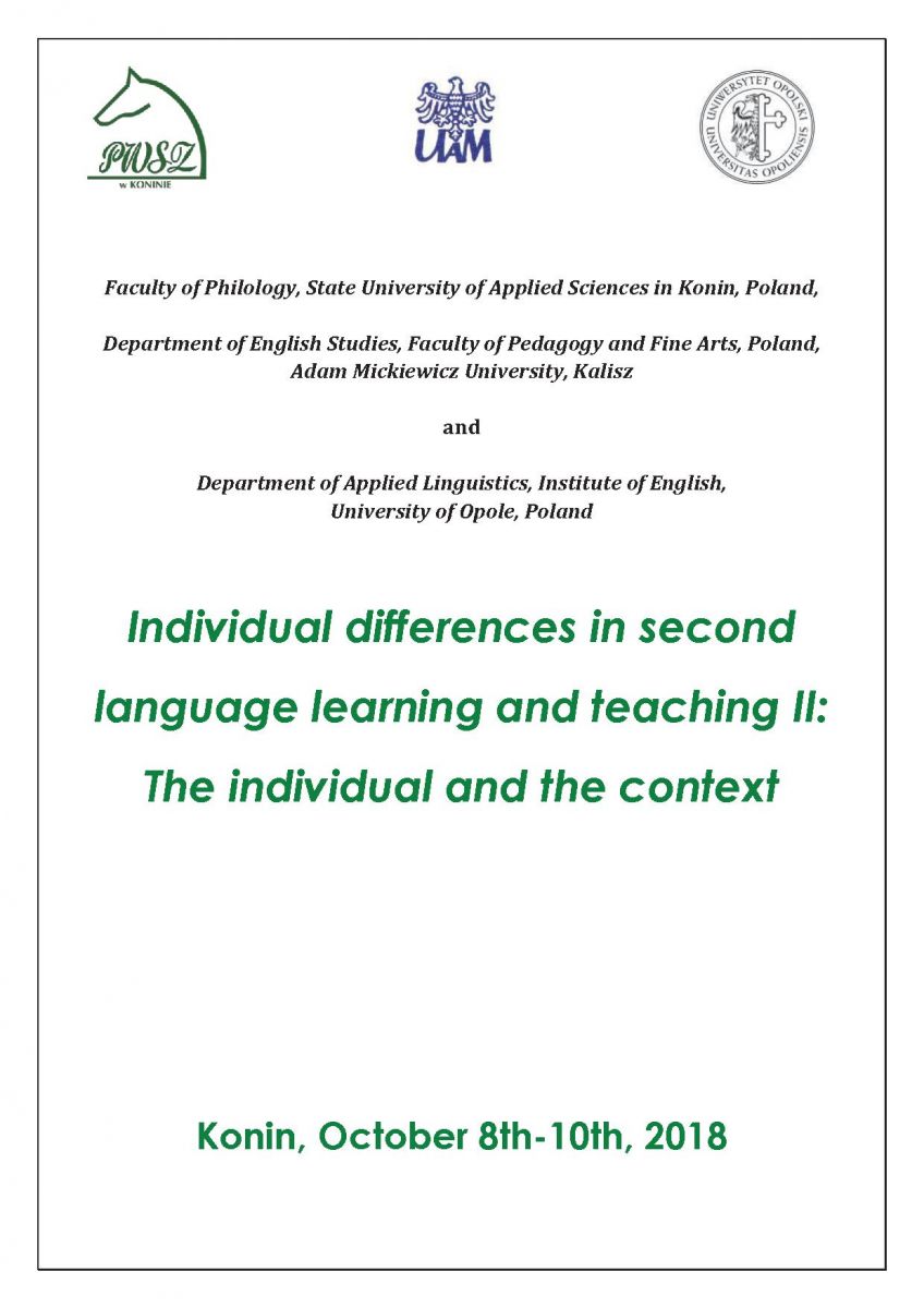 Konferencja "Individual differences in second language learning and teaching II: The individual and the context"