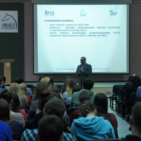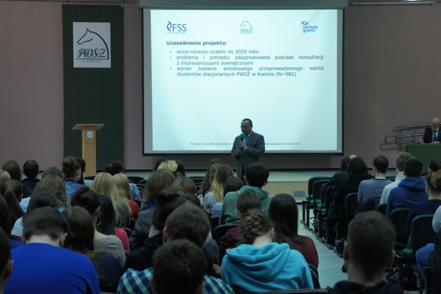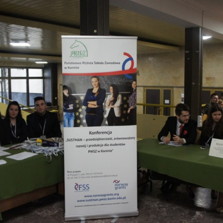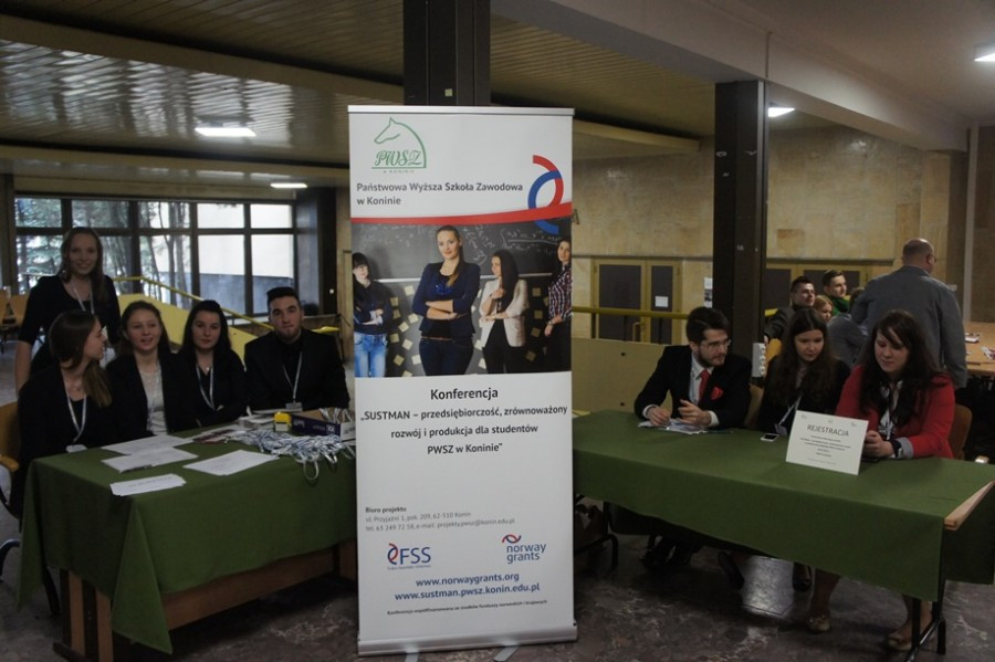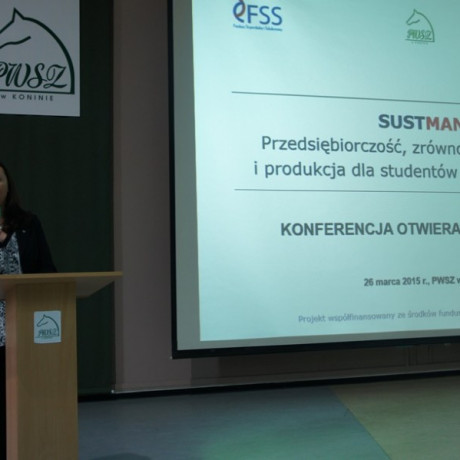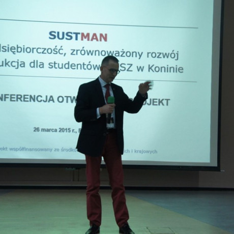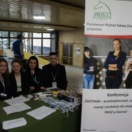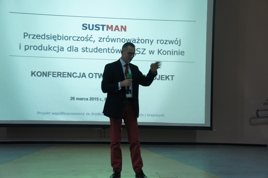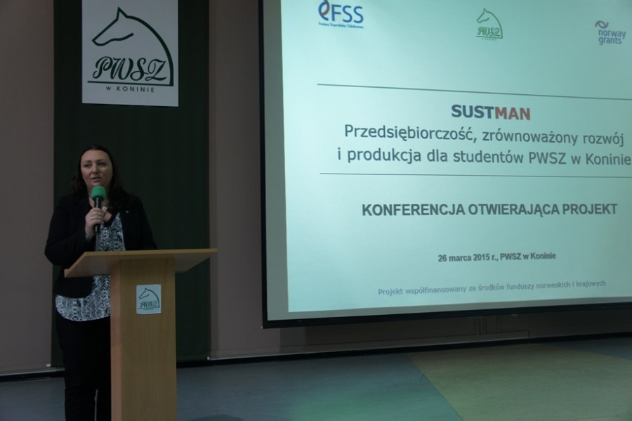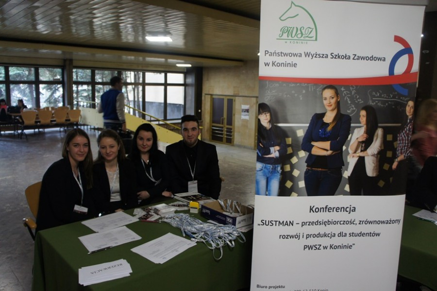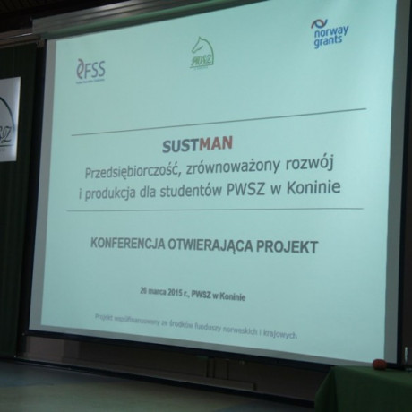 Konferencja otwierająca projekt „SUSTMAN – przedsiębiorczość, zrównoważony rozwój i produkcja dla studentów PWSZ w Koninie odbyła się 26 marca 2015 r. w auli Państwowej Wyższej Szkoły Zawodowej w Koninie. Uczestniczyło w niej ponad 300 studentów i nauczycieli akademickich oraz przedstawiciele władz samorządowych, firm i instytucji związanych z zarządzaniem, produkcją, administracją, edukacją czy ochroną środowiska.