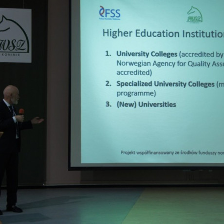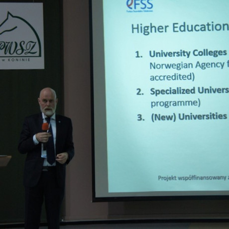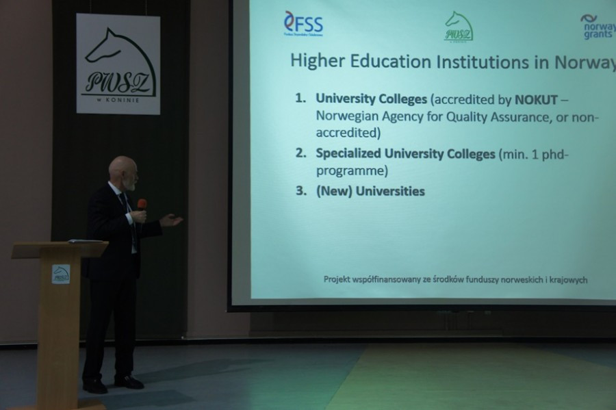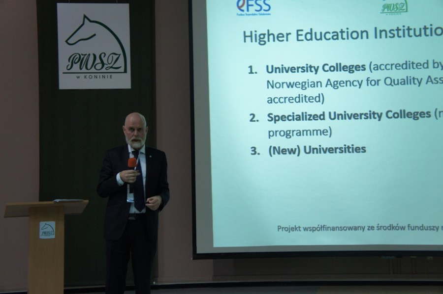 Uczestnicy konferencji zapoznali się także z norweskim systemem edukacyjnym (Norwegian Higher Education Structure), o czym mówił Inge Øystein Moen, kanclerz Gjøvik University College. O zasadach udziału w projekcie i korzyściach dla jego uczestników mówił dr Artur Zimny, dziekan Wydziału Społeczo-Humanistycznego PWSZ w Koninie. Na koniec Cezary Wojarski, prokurenta w MACPOSTER Sp. z o.o., opowiedział o polsko-norweskiej współpracy w ocenie polskiego przedsiębiorcy.