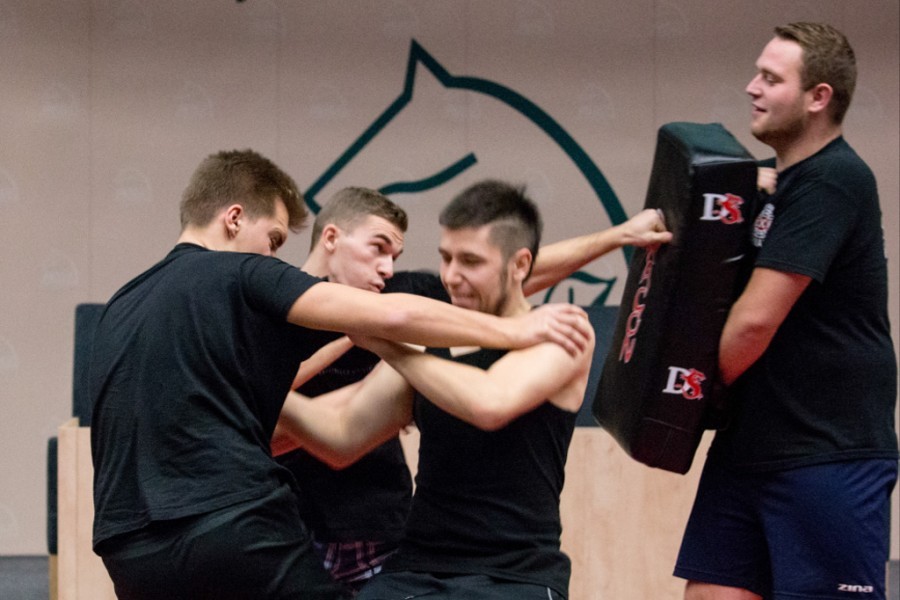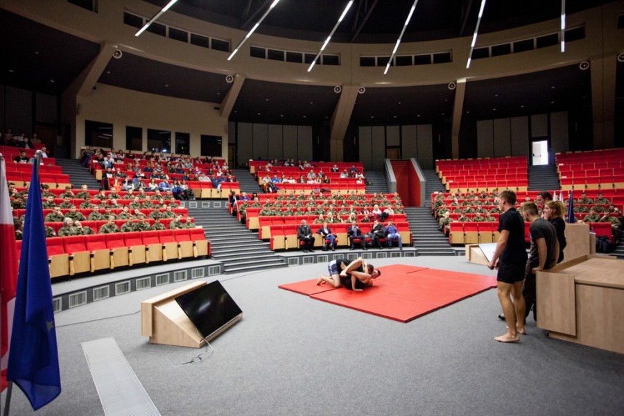 Spotkanie (10 listopada) rozpoczęła prezentacja kierunku bezpieczeństwo wewnętrzne, które prowadzi Katedra Bezpieczeństwa Wewnętrznego. Uczestnikom tej AMS, uczniom klas mundurowych z Zespołu Szkół Technicznych w Kole i z Zespołu Szkół im. Mikołaja Kopernika w Koninie, studenci opowiadali o jego najciekawszych stronach i swoich ulubionych zajęciach, m.in. strzelaniu, ćwiczeniach z daktyloskopii.
