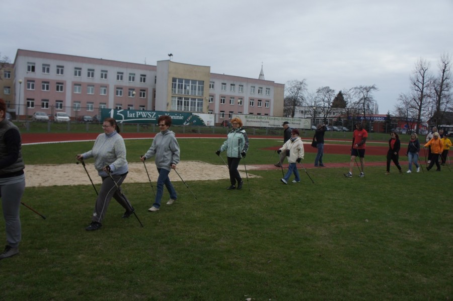 Marsz rozpoczął się od fachowych porad Iwony Gorzelańczyk, instruktorki tego pochodzącego z Finlandii marszu. Potem uczestnicy przeszli kilka kilometrów wokół jeziorka w Morzysławiu. Studenci WKFiOZ czuwali przy stanowiskach z aparatami do mierzenia ciśnienia i tętna. – Koniecznie trzeba badać tętno i pilnować, by było w granicach 130 uderzeń na minutę i więcej – wyjaśnił dziekan Inerowicz.