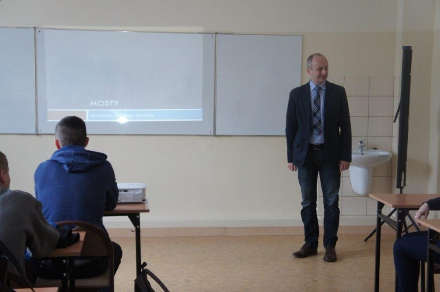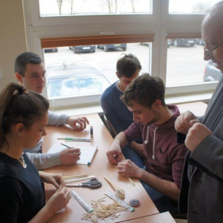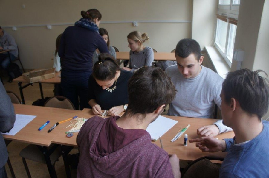 Mgr inż. Roman Pilch mówił natomiast o konstrukcjach budowli mostowych i komunikacyjnych, niegdyś i współcześnie. ‒ Podczas zajęć praktycznych uczniowie przygotowali szkic swojego projektu, a następnie z materiałów modelarskich tworzyli modele przestrzenne według podstawowych zasad techniki tworzenia mostów. Wykazali się wielkim zaangażowaniem, pomysłowością i umiejętnością współpracy ‒ wyjaśnia.