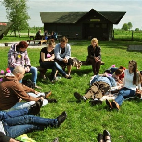 Jedna z zabaw polegała na zapamiętaniu imion. Imiona miały się kojarzyć uczestnikom z cechami ich osobowości, dlatego każdy zrobił sobie plakietkę i opowiedział, co namalował i dlaczego postrzega siebie właśnie tak. Była też zabawa w kalambury, jedna z ulubionych zabaw starszych i młodszych.
