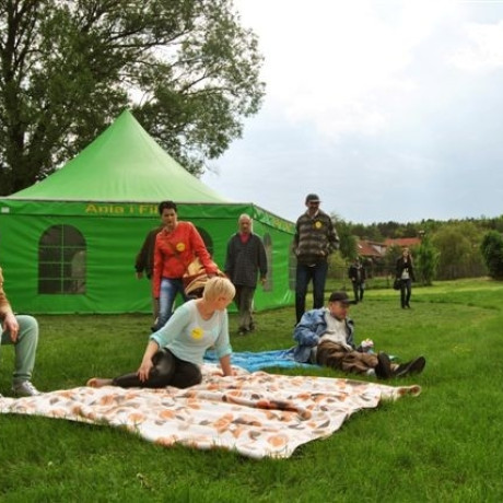 Popołudniową część „majówki” wypełniły zajęcia terapeutyczne, integracyjne i artystyczne w formie zabaw. – Metodą wykorzystywaną do kompensowania deficytów rozwojowych są zajęcia oparte na założeniach pedagogiki zabawy. Zabawa bowiem należy do podstawowych form aktywności człowieka, jest wypoczynkiem czynnym, nie wymaga spokoju, ciszy, izolacji lecz zmienności, bogactwa wrażeń, przygody i sytuacji nowych – wyjaśnia Justyna Wysocka z III roku PS, koordynator projektu.