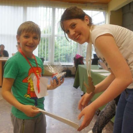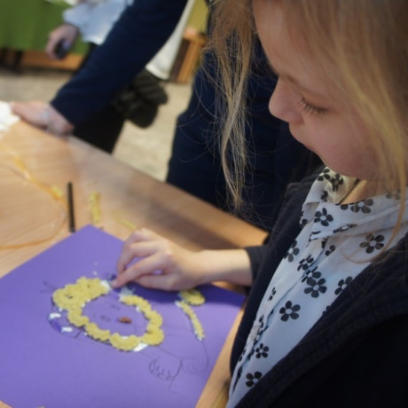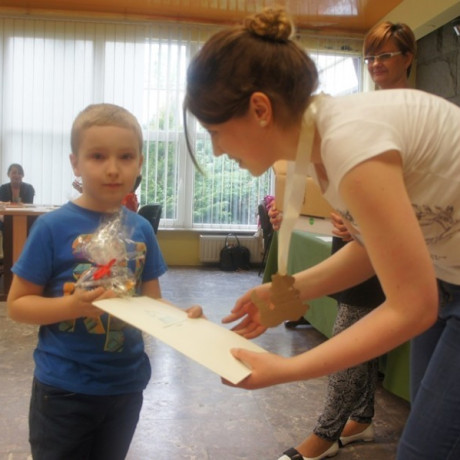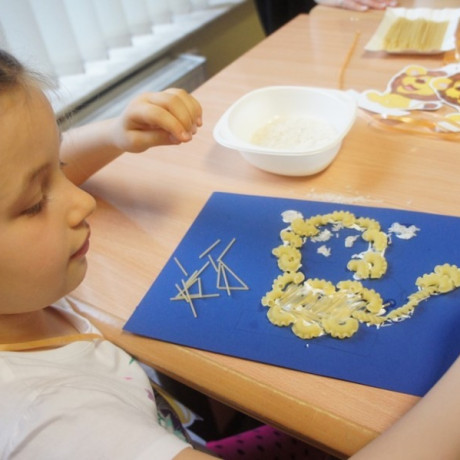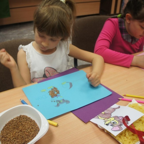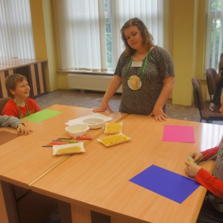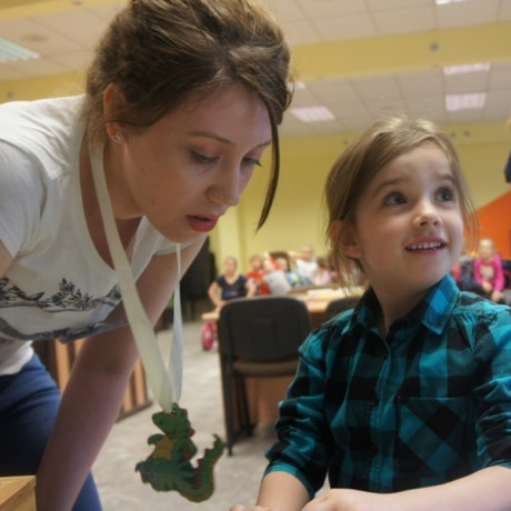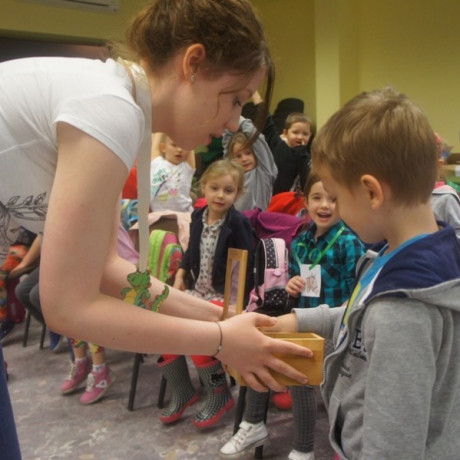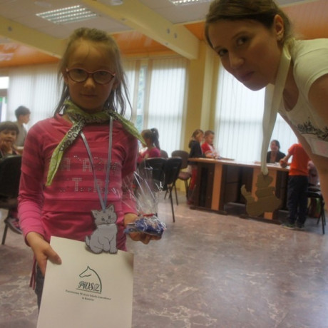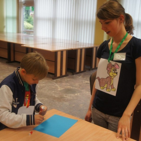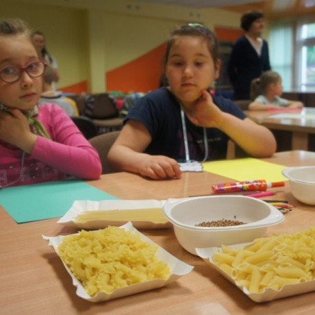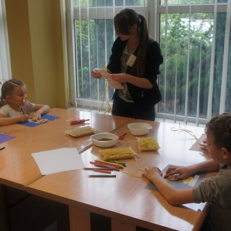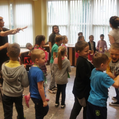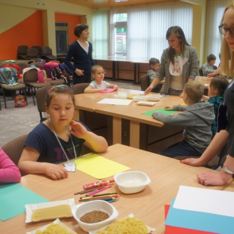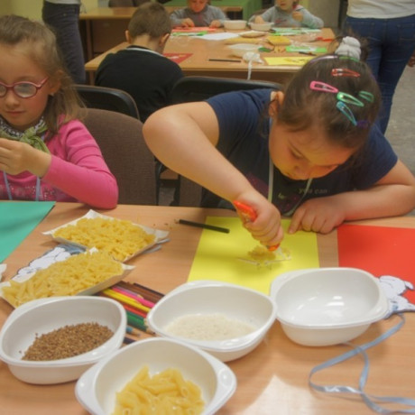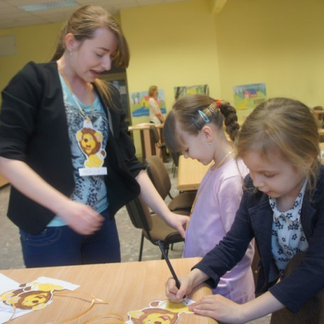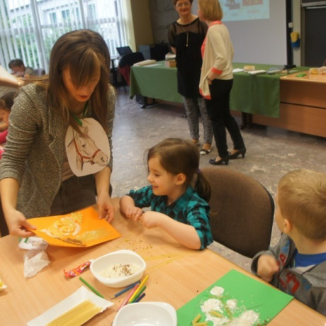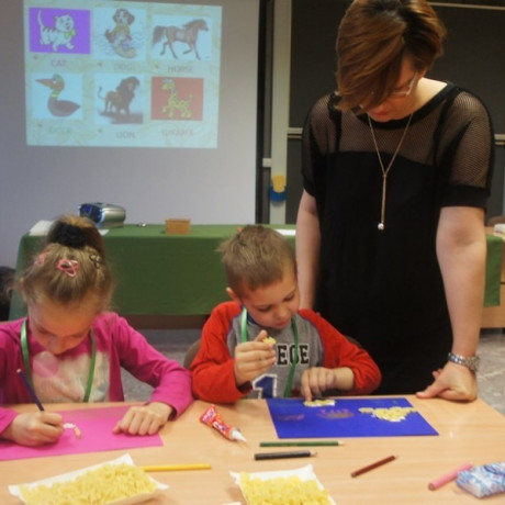 Program spotkania poświęcony zwierzętom był zróżnicowany. Dzieci nie tylko rozpoznawały gatunek, ale też miały przypisać je do grupy zwierząt hodowanych na farmie, domowych lub dzikich. Wszystko z użyciem odpowiednio dostosowanego do ich wieku słownictwa angielskiego. Potem, używając suchego makaronu, ryżu, kaszy i kredek, robiły portrety wybranych przedstawicieli fauny: kaczki, żyrafy, lwa i innych. ‒ To jest pies z kosmosu ‒ wyjaśnił dumnie Jacek. ‒ Ma dwa ogony, „trzy oczy” i gryzie cztery razy mocniej niż nasze psy ‒ dodał. Jego kolega z ławki zrobił ziemskiego czworonoga.