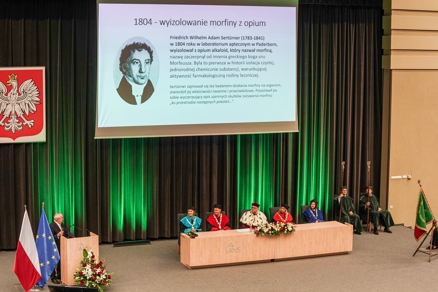 Uroczystość zakończył wykład inauguracyjny. Tym razem wygłosił go dr Jerzy Jambor, prof. ANS, specjalista w dziedzinie nauk farmaceutycznych. Prowadzi zajęcia z fitoterapii i fitokosmetyki, receptury kosmetycznej, aromaterapii i farmakologii. Tytuł wystąpienia był związany z tą tematyką ‒ „Zioła a nowoczesna farmakoterapia”.
