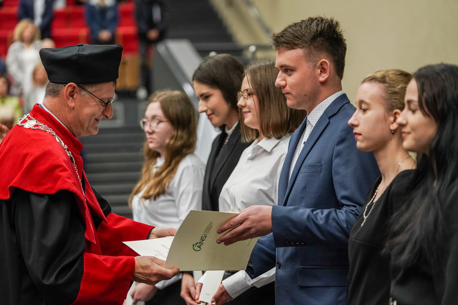 Nowy rok akademicki rozpoczęło u nas ponad 1800 osób, a wśród nich ponad 750 na I roku. Ślubowanie w ich imieniu złożyli przedstawiciele trzech wydziałów. Immatrykulacji, przez uderzenie w lewe ramię studentów, dokonał rektor i prof. ANS ‒ dr hab. Artur Zimny, w asyście prorektora ‒ dr. Grzegorza Pawłowskiego.