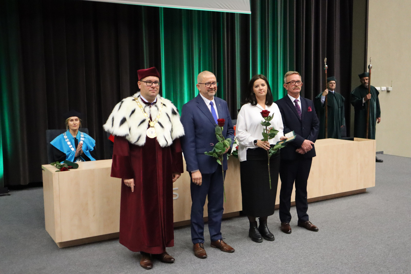 Obecni na uroczystości przedstawiciele uczelni, władz miasta i kraju przekazali studentom, wykładowcom i pracownikom życzenia dobrego roku, m.in. dr Sebastian Łukaszewski, przewodniczący Rady Uczelni, dr Wiesław Steinke, przewodniczący Rady Miasta Konina, senator Leszek Galemba. Kilka słów skierowała ‒ szczególnie do „pierwszorocznych” ‒ Sandra Owczarek, przewodnicząca samorządu studenckiego: ‒ Życzę Wam, abyście odważnie wchodzili w ten nowy etap życia, pełni pasji i ciekawości świata. Niech studia staną się dla Was nie tylko czasem nauki, ale również samorozwoju, przyjaźni i niezapomnianych doświadczeń.