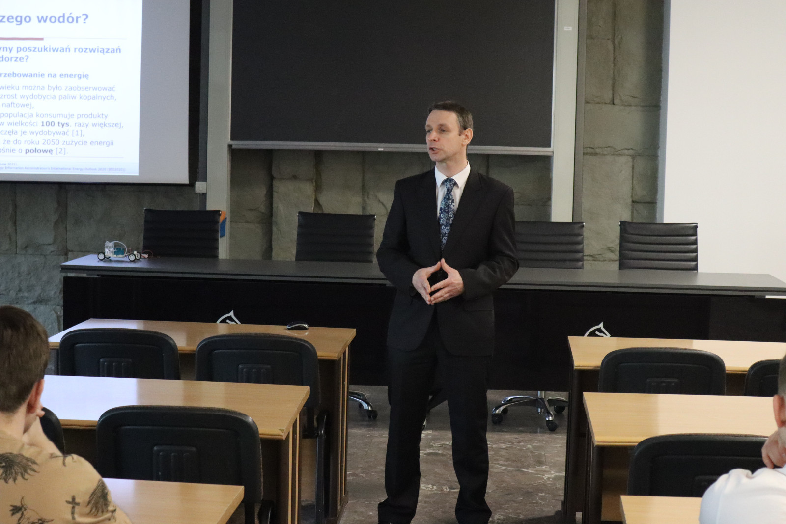 Dlaczego wodór? – to tytuł wykładu, który dr Paweł Sobczak, menedżer kierunku zarządzanie i inżynieria produkcji, przedstawił uczniom klasy akademickiej odnawialne źródła energii z Zespołu Szkół Górniczo-Energetycznych w Koninie podczas szkolnych Dni Technika.
