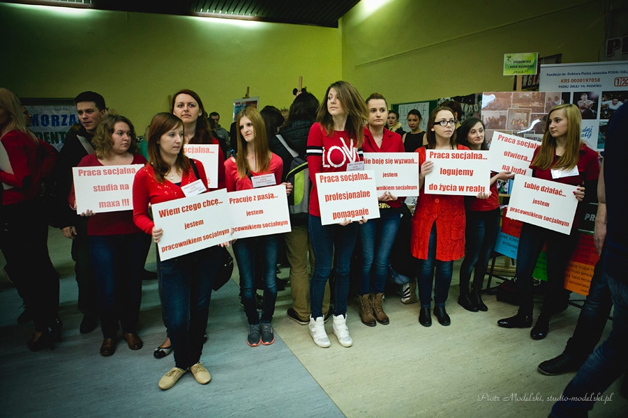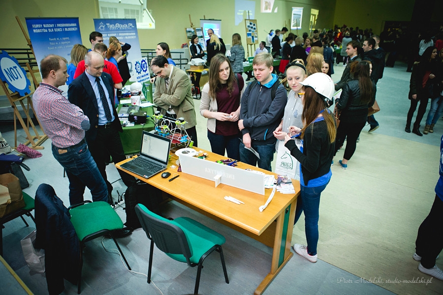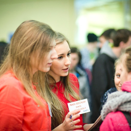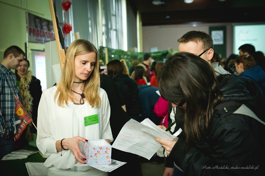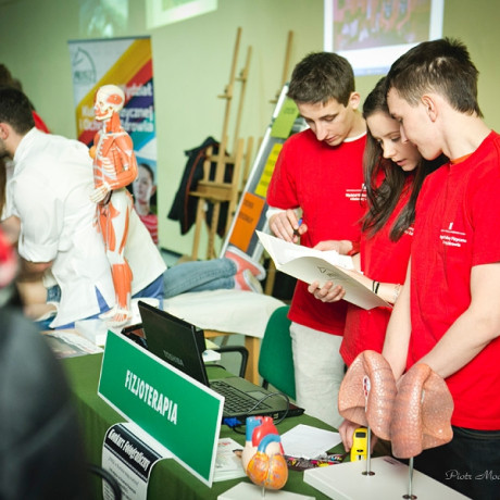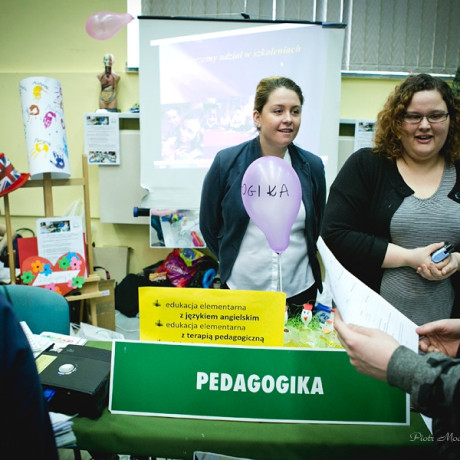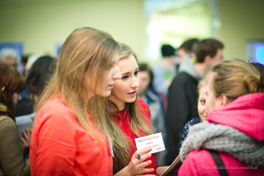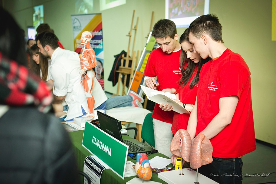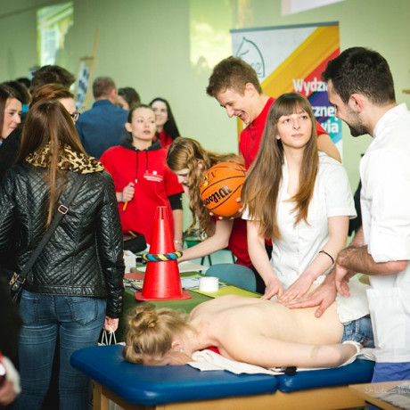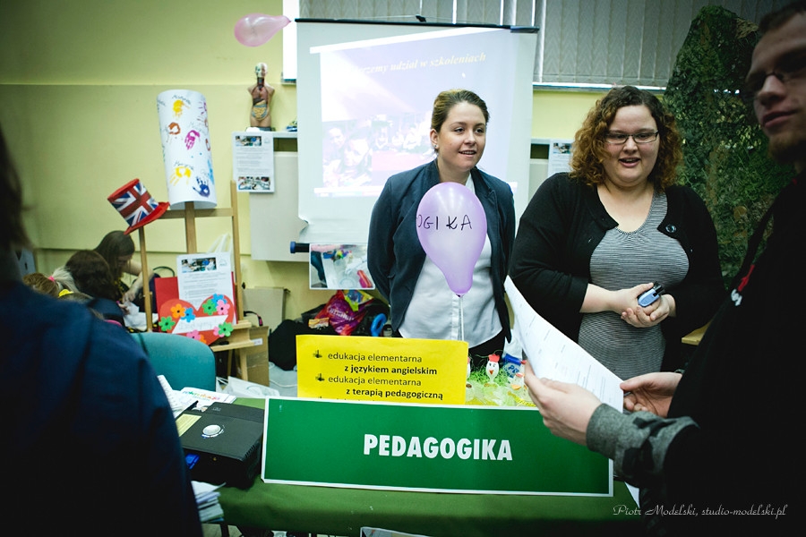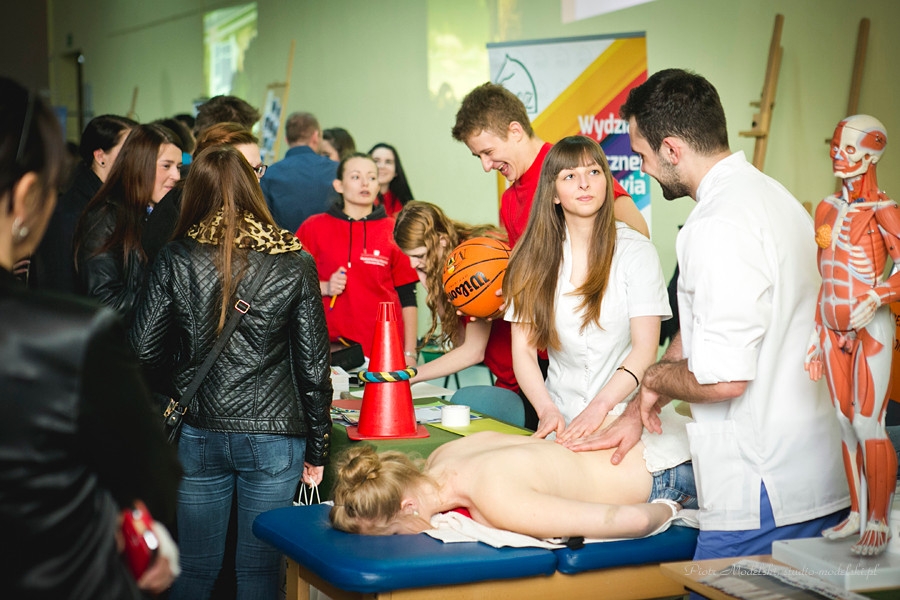 Dlatego w auli przy ul. Przyjaźni każdy z kierunków przygotował swoje stoisko, żeby pokazać się od najlepszej strony. Były więc lody śmietankowe i listki bazylii zamrażane ciekłym azotem (dietetyka), profesjonalny masaż (fizjoterapia), bezpieczne rzuty na materac (bezpieczeństwo wewnętrzne), „pedagogiczny” pluszowy pies (pedagogika), krąg haseł (praca socjalna) i drukarka, z której co chwilę wychodziły trójwymiarowe plastikowe ośmiorniczki (mechanika i budowa maszyn).