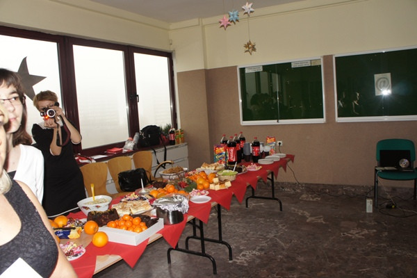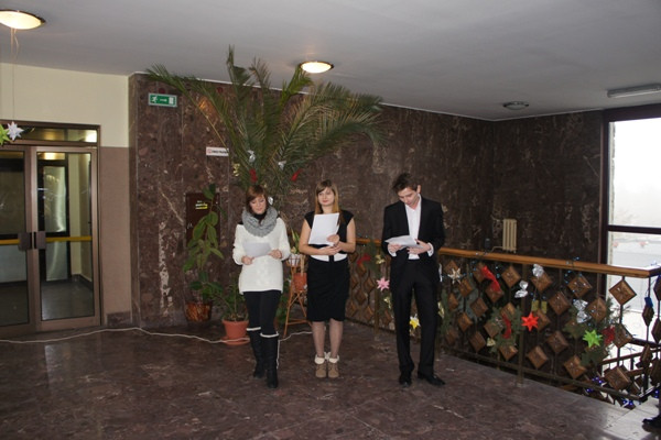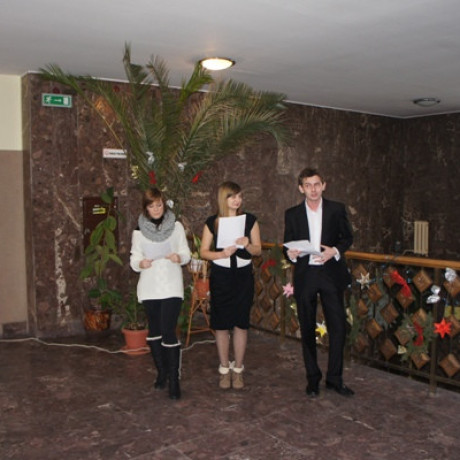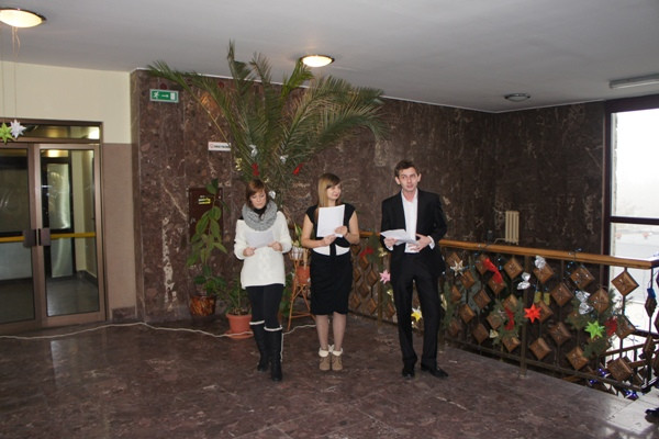 Wigilię przygotowali studenci I i II roku politologii oraz członkowie Studenckiego Koła Naukowego Politologów. Do wigilijnego stołu, suto zastawionego na korytarzu obok Instytutu Politologii, zaprosili wszystkich chętnych studentów i pracowników Uczelni. Oprócz wspólnego kolędowania i biesiadowania na uczestników czekał „kąsek” w postaci etiudy teatralnej przedstawionej przez Ewelinę Stanisławską, Patrycję Łechtańską i Mirosława Jeżyka. W swych „Politycznych rozważaniach nad żłóbkiem” w sposób zabawny przedstawili polską rzeczywistość, zwracając zwłaszcza uwagę na nasze przywary narodowe i zachowania polityków. Po zakończonym występie wszystkim zgromadzonym życzenia świąteczno-noworoczne w imieniu władz Instytutu Politologii złożył dr Jerzy Ciupa, wicedyrektor Instytutu.