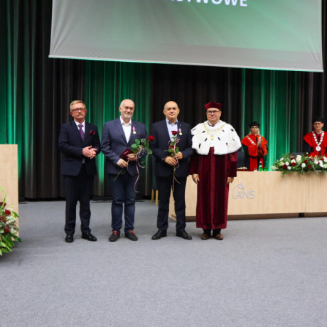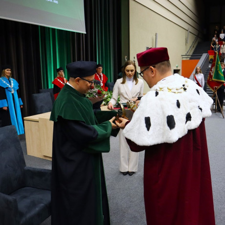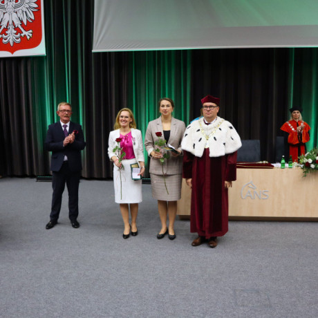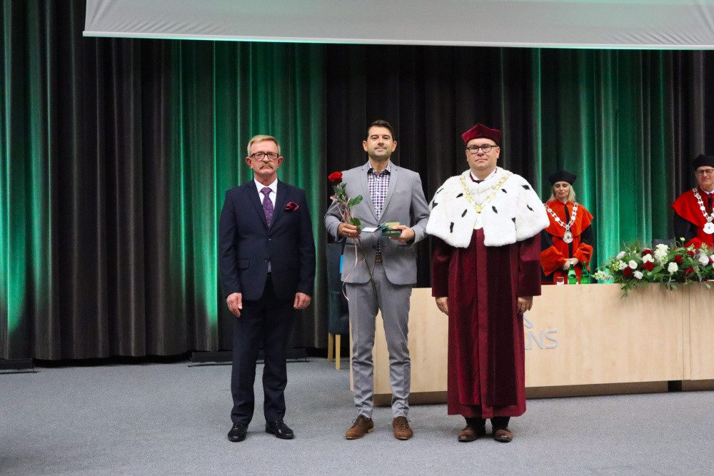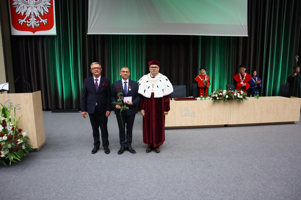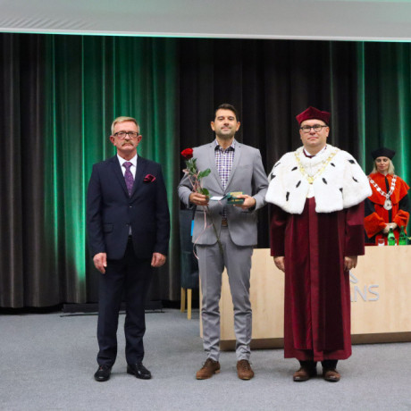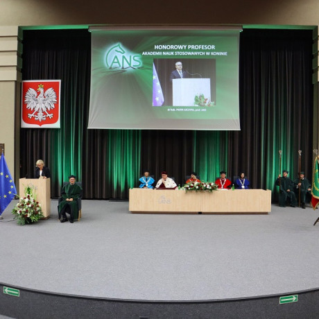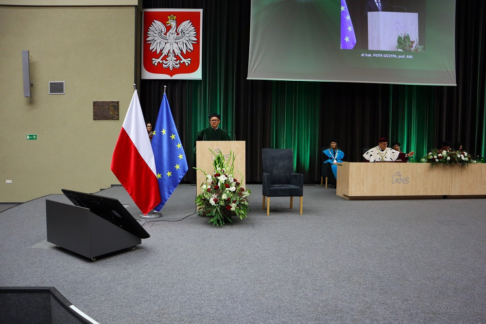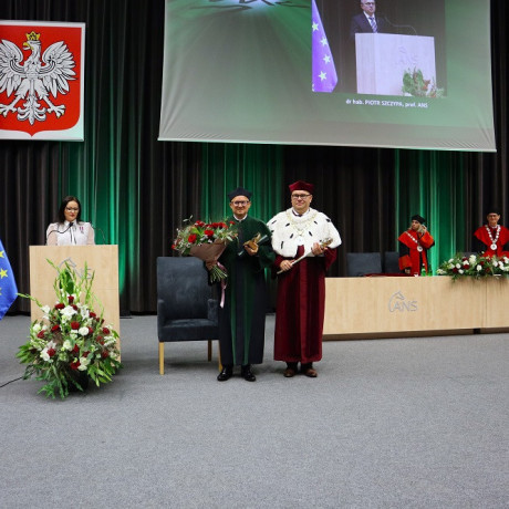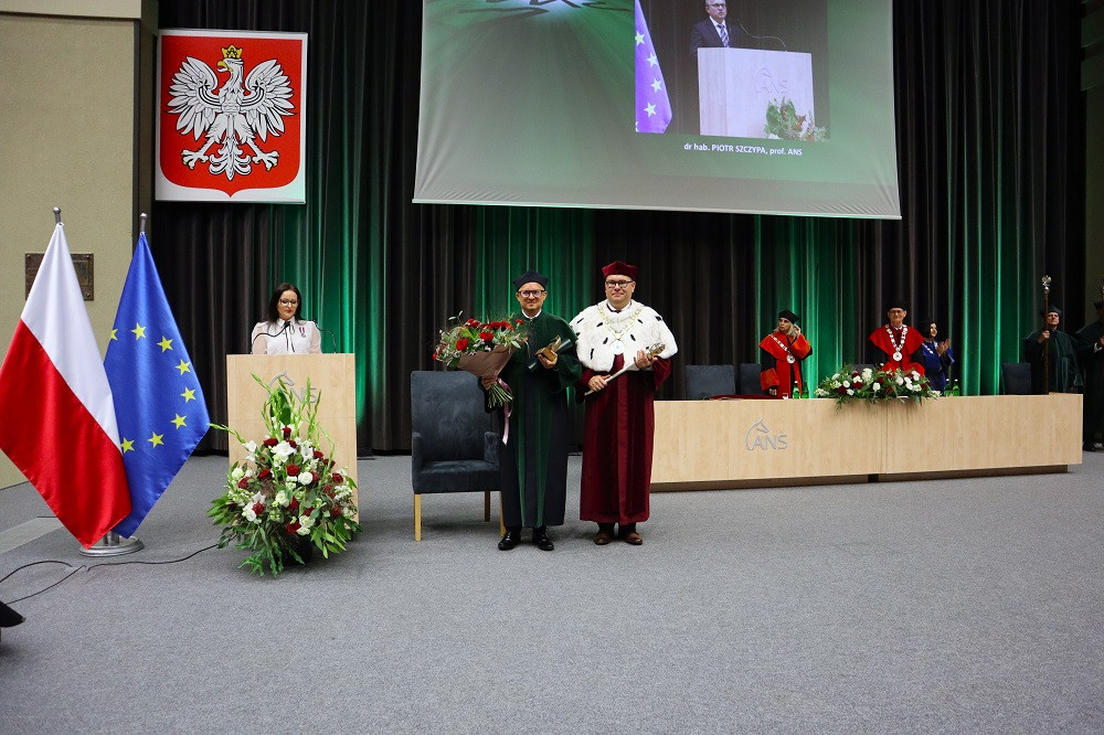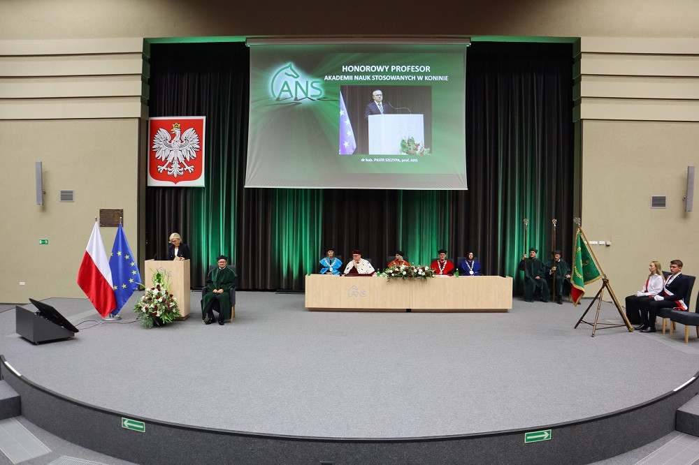 Tradycją naszej uczelni jest nadawanie w tym dniu tytułu Honorowego Profesora ANS w Koninie. W tym roku tego zaszczytu dostąpił dr hab. Piotr Szczypa, prof. ANS, ekonomista związany z naszą uczelnią od 2015 r. Laudację wygłosiła dr Małgorzata Cieciura, także ekonomistka, która nie tylko przedstawiła drogę zawodową i osiągnięcia naukowe, ale „ujawniła” pozazawodowe upodobania laureata. W nominacji, z widowni, prof. Szczypie towarzyszyli żona i synowie.