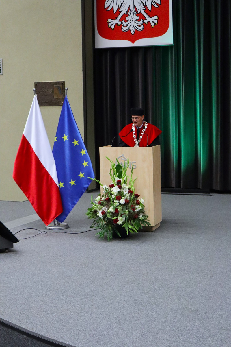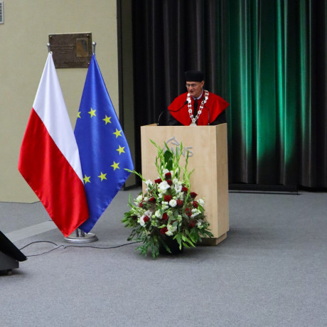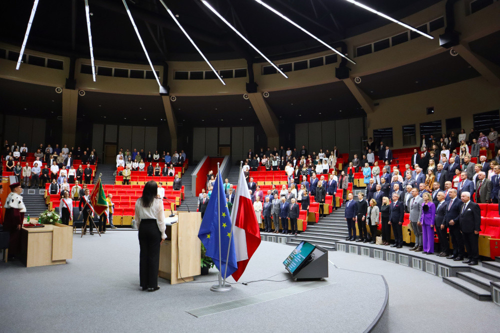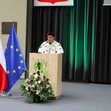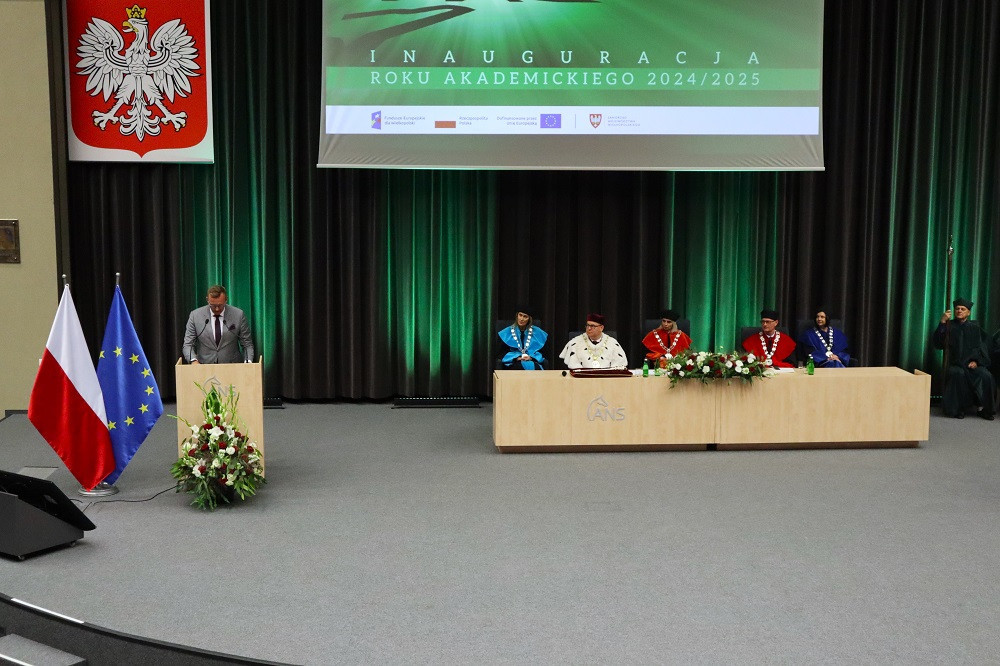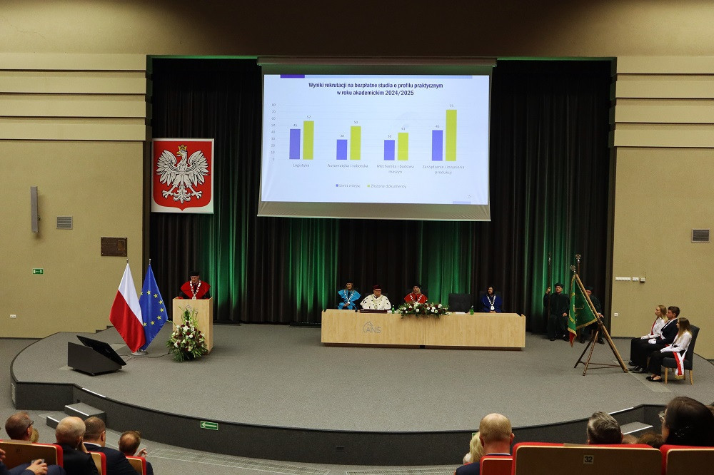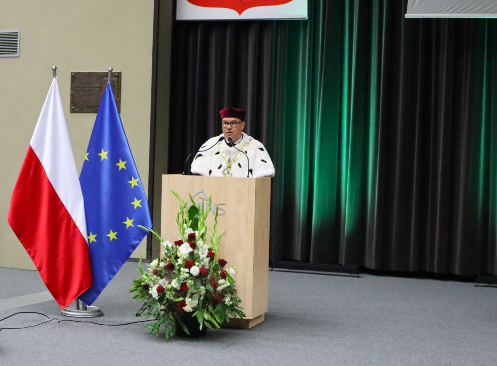 Tegoroczną, 27. już inaugurację zdominowała tematyka rozpoczynającego się właśnie projektu „Rozwój studiów o profilu praktycznym i form kształcenia ustawicznego dostosowanych do potrzeb Wielkopolski Wschodniej”. Przypomnijmy, to dzięki niemu uczelnia ma bezpłatnie wykształcić specjalistów, na różnym poziomie, w branżach logistycznej i technicznej. Plany zakładają, że do 2029 roku może to być ponad 1,5 tys. osób. Dodajmy jeszcze, że nabór na studia z programu na ten rok przekroczył najśmielsze oczekiwania, a przede wszystkim założone limity. Mówił o tym prorektor dr Grzegorz Pawłowski. I tak, na logistykę wynosił 45, a dokumenty złożyło 57 kandydatów, odpowiednio na automatykę i robotykę 30 i 50, mechanikę i budowę maszyn 30 i 41, a na magisterskie zarządzanie i inżynierię produkcji 45 i 75. Po konsultacjach i zgodzie Urzędu Marszałkowskiego WW, który zawiaduje unijnymi funduszami, z których w największej części program jest finansowany, przyjęto wszystkich spełniających określone warunki. – Tym projektem, który jest odpowiedzią na potrzeby regionu, włączamy się w przekształcanie lokalnego rynku. Dlatego jest on tak ważny. Poza kształceniem naszą rolą jest również niwelowanie różnic społeczno-gospodarczych i ograniczenie depopulacji – podkreślił rektor Zimny. W dalszej części wystąpienia mówił o planach na nowy rok, m.in. kontynuacji cyfryzacji procesu kształcenia. – Ostatnie cztery lata inwestowaliśmy w tej kwestii w kierunki techniczne i medyczne, teraz czas na kierunki humanistyczne – zapowiedział. Wspomniał o rozwoju świetnej współpracy ze szkołami średnimi naszego regionu. Pochwalił również współpracę międzynarodową w ramach Erasmusa, bowiem liczba naszych studentów, którzy z niego skorzystali przekroczyła 1000 osób.