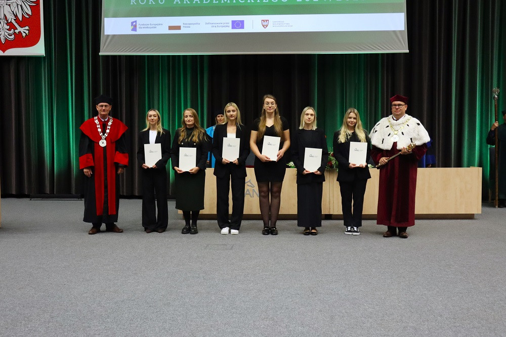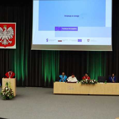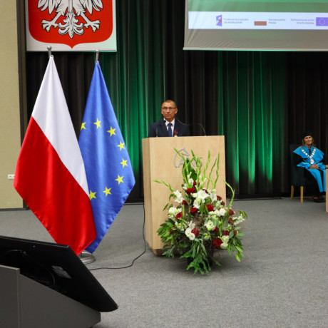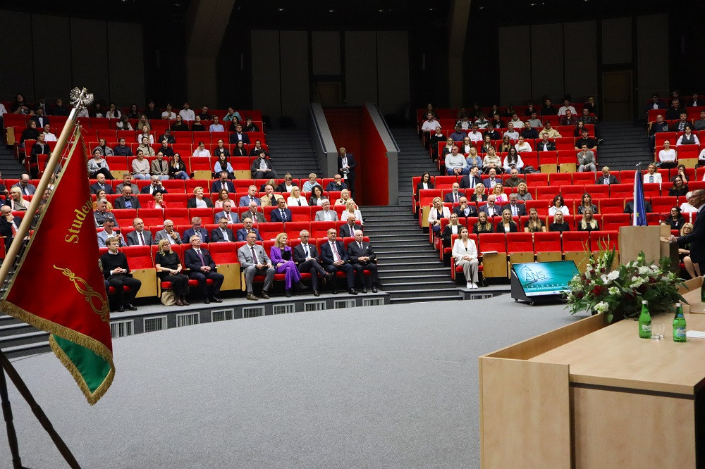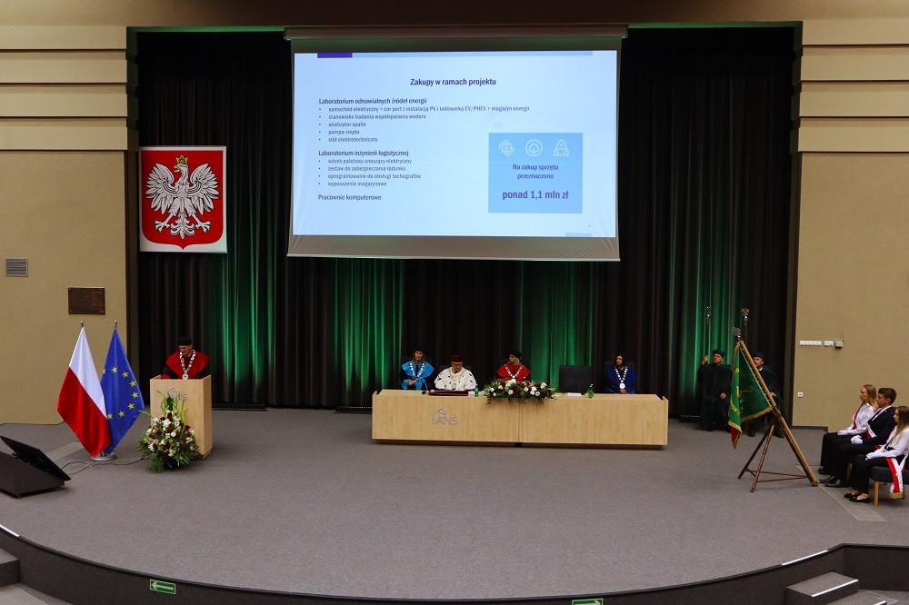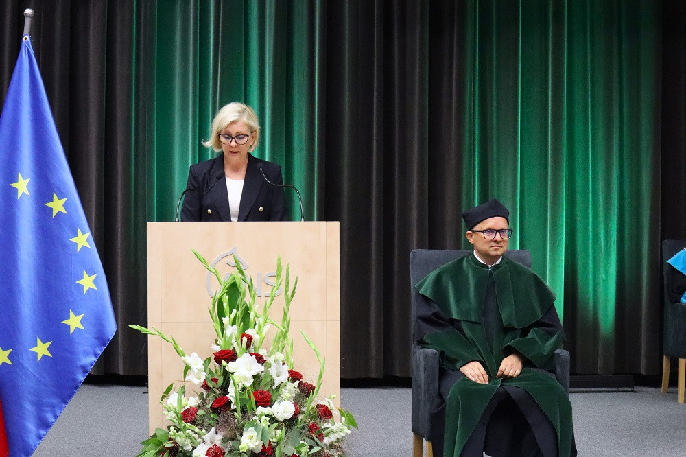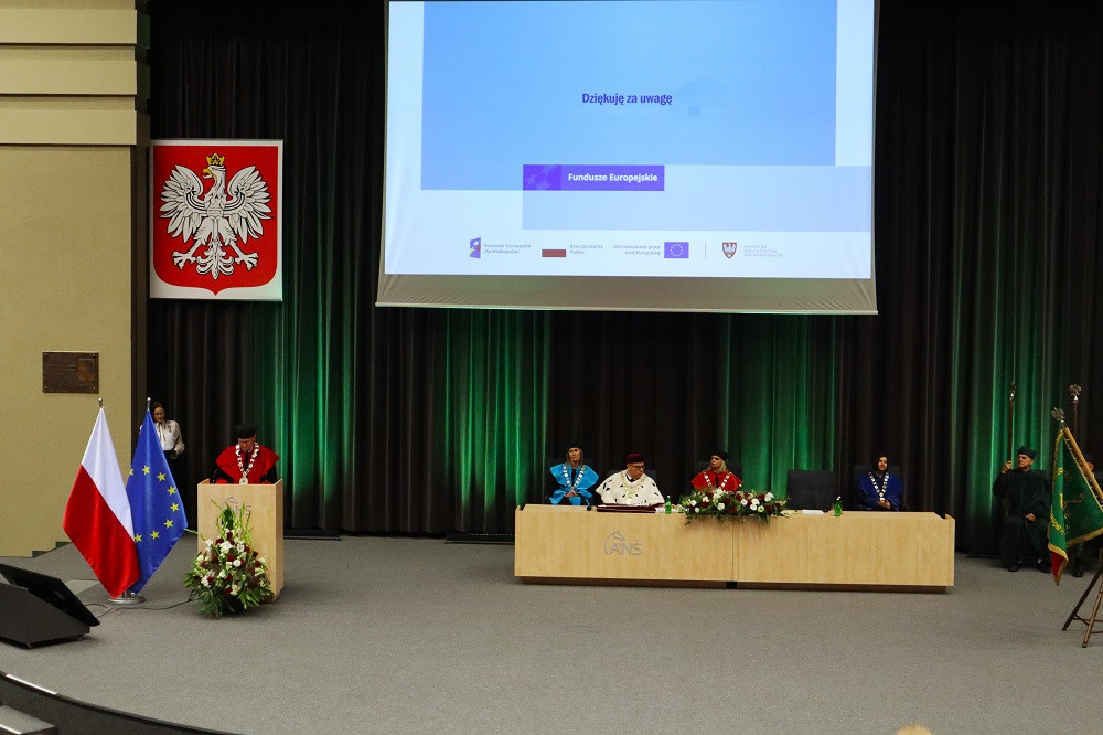 Tegoroczną, 27. już inaugurację zdominowała tematyka rozpoczynającego się właśnie projektu „Rozwój studiów o profilu praktycznym i form kształcenia ustawicznego dostosowanych do potrzeb Wielkopolski Wschodniej”. Przypomnijmy, to dzięki niemu uczelnia ma bezpłatnie wykształcić specjalistów, na różnym poziomie, w branżach logistycznej i technicznej. Plany zakładają, że do 2029 roku może to być ponad 1,5 tys. osób. Dodajmy jeszcze, że nabór na studia z programu na ten rok przekroczył najśmielsze oczekiwania, a przede wszystkim założone limity. Mówił o tym prorektor dr Grzegorz Pawłowski. I tak, na logistykę wynosił 45, a dokumenty złożyło 57 kandydatów, odpowiednio na automatykę i robotykę 30 i 50, mechanikę i budowę maszyn 30 i 41, a na magisterskie zarządzanie i inżynierię produkcji 45 i 75. Po konsultacjach i zgodzie Urzędu Marszałkowskiego WW, który zawiaduje unijnymi funduszami, z których w największej części program jest finansowany, przyjęto wszystkich spełniających określone warunki. – Tym projektem, który jest odpowiedzią na potrzeby regionu, włączamy się w przekształcanie lokalnego rynku. Dlatego jest on tak ważny. Poza kształceniem naszą rolą jest również niwelowanie różnic społeczno-gospodarczych i ograniczenie depopulacji – podkreślił rektor Zimny. W dalszej części wystąpienia mówił o planach na nowy rok, m.in. kontynuacji cyfryzacji procesu kształcenia. – Ostatnie cztery lata inwestowaliśmy w tej kwestii w kierunki techniczne i medyczne, teraz czas na kierunki humanistyczne – zapowiedział. Wspomniał o rozwoju świetnej współpracy ze szkołami średnimi naszego regionu. Pochwalił również współpracę międzynarodową w ramach Erasmusa, bowiem liczba naszych studentów, którzy z niego skorzystali przekroczyła 1000 osób.