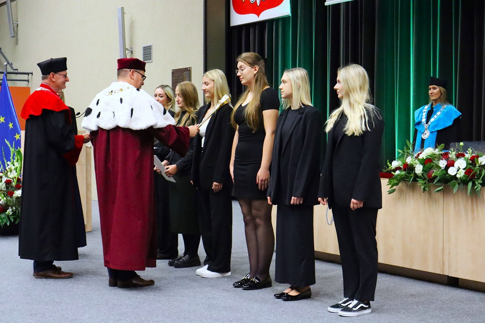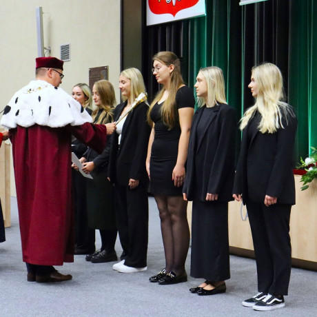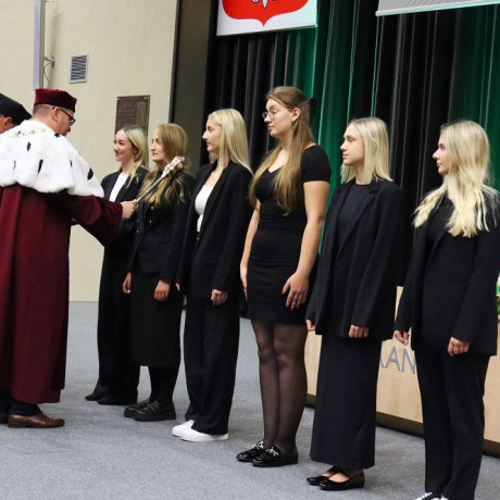 Rozpoczęcie nowego roku akademickiego jest nierozerwalnie związane z immatrykulacją pierwszych roczników. Jak zawsze podczas uroczystego ślubowania reprezentowali ich przedstawiciele studiów I i II stopnia z trzech wydziałów. Byli to: Magdalena Piechalak – finanse i rachunkowość (I), Weronika Potasińska – zarządzanie i inżyniera produkcji (II), Karina Dreszer – pedagogika (I), Julia Augustyniak – filologia (II), Anna Kaczmarek – dietetyka (I), Maria Różańska – pielęgniarstwo (II).