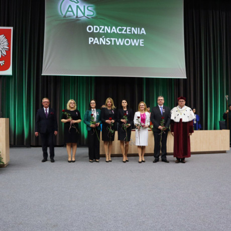 Inauguracja to właściwy czas na wręczenie wyróżnień państwowych, ministerialnych i uczelnianych. Złotym Krzyżem Zasługi odznaczony został dr Janusz Kwieciński, prof. ANS. Złoty Medal za Długoletnią Służbę otrzymali Robert Zawadziński i dr inż. Mirosław Żywiołowski, natomiast Srebrny Medal: Agnieszka Andrzejewska, Katarzyna Grudzińska, Patrycja Herman, Karol Miedziński, Regina Szkudelska, dr Agnieszka Szymankowska. Medalem Komisji Edukacji Narodowej odznaczeni zostali dr Miłosz Olejniczak i dr Karolina Waliszewska, a Złotym Medalem ANS w Koninie Małgorzata Chybicka. Medal naszej uczelni otrzymali: Ramona Kozłowska-Wróbel i dr Agnieszka Szymankowska oraz firma VKF Spork Heinz Renzel.