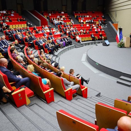 Wspomnienie o patronie auli, w której od lat odbywają uczelniane uroczystości, Janie A.P. Kaczmarku towarzyszyło tej od początku. Bowiem Jego pamięć i odejście 21 maja tego roku uczczono minutą ciszy.
