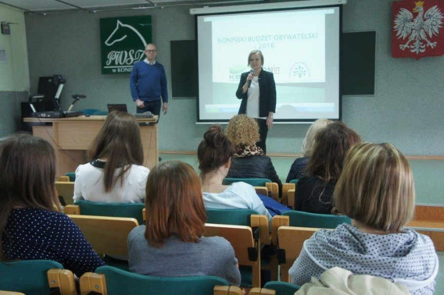 Studenci Państwowej Wyższej Szkoły Zawodowej w Koninie uczestniczyli 14 kwietnia 2015 r. w spotkaniu dotyczącym Konińskiego Budżetu Obywatelskiego.