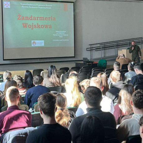 Studenci bezpieczeństwa wewnętrznego, gospodarki i administracji publicznej oraz psychologii i komunikacji w zarządzaniu wzięli udział w spotkaniu z st. chor. sztab. Leszkiem Olejniczakiem, p.o. Komendanta Placówki Żandarmerii Wojskowej w Powidzu.
