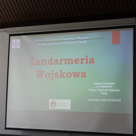 Podczas spotkania prowadzący przedstawił strukturę, organizację i najważniejsze zadania Żandarmerii Wojskowej.