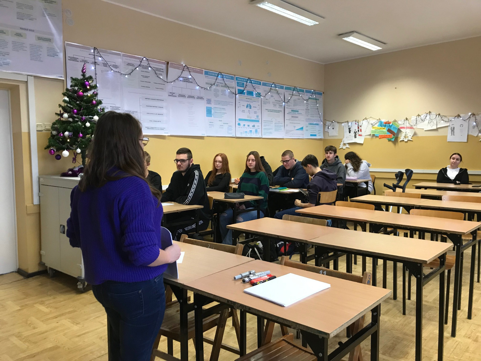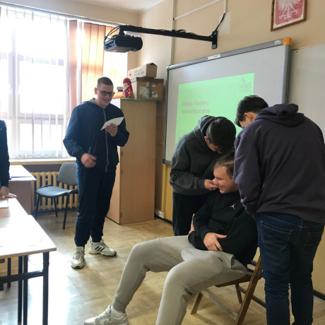 Spotkanie obejmowało wykłady i ćwiczenia. – Najpierw wyjaśniliśmy im na czym polega „the art of paying attention”, czyli sztuka zwracania uwagi na otaczające nas sytuacje, które na pierwszy rzut oka wydają się pospolite, ale po głębszej analizie nabierają innego znaczenia. Następnie był wykład o tym, co tak naprawdę sprawia, że ludzie wydają nam się atrakcyjni – opowiada Julia Nawrocka z I roku PKZ. Później uczniowie zrobili sobie test na osobowość oraz poznali cechy, jakimi charakteryzuje się każdy z czterech typów osobowości. – Po nich przyszedł czas na ćwiczenia. Pierwsze było uświadamiające jak ważna w życiu jest motywacja do działania i odnoszenia sukcesów, drugie dotyczyło barier i błędów w komunikacji, pokazało jak szumy komunikacyjne wpływają na komunikację interpersonalną – dodaje Julia. Na koniec zauważa, że uczniowie chętnie uczestniczyli w zajęciach i wykazali zainteresowanie zarówno tematyką spotkania, jak i udziałem w ćwiczeniach.