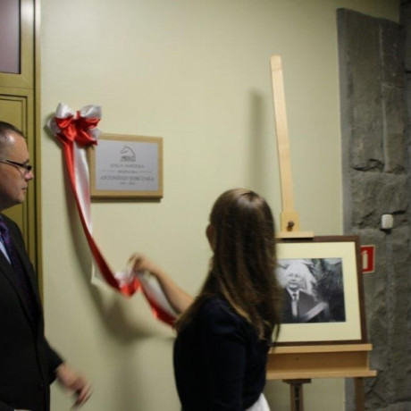 Dwie godziny później imię prof. Antoniego Sobczaka, ekonomisty i matematyka, zmarłego 27 lutego 2014 roku, nadano sali 5B w budynku przy ul. Przyjaźni 1. To w tym budynku mieścił się zbudowany i kierowany przez niego (1999–2008) Instytut Ekonomiczny. Autorka laudacji, Zofia Sikorska, która przez wiele lat pracowała i przyjaźniła się z Nim, przypomniała: – Jego życie zawodowe było intensywne, bo lubił pracować. I podkreśliła: – To dzięki Niemu w kierowanym przez Niego instytucie panowała życzliwa atmosfera. To były ważne słowa, bo sympatia była obustronna. W jednym z wywiadów dla „Biuletynu PWSZ w Koninie” Profesor Sobczak powiedział: – Lubię tę Uczelnię. Panuje tu dobra atmosfera.