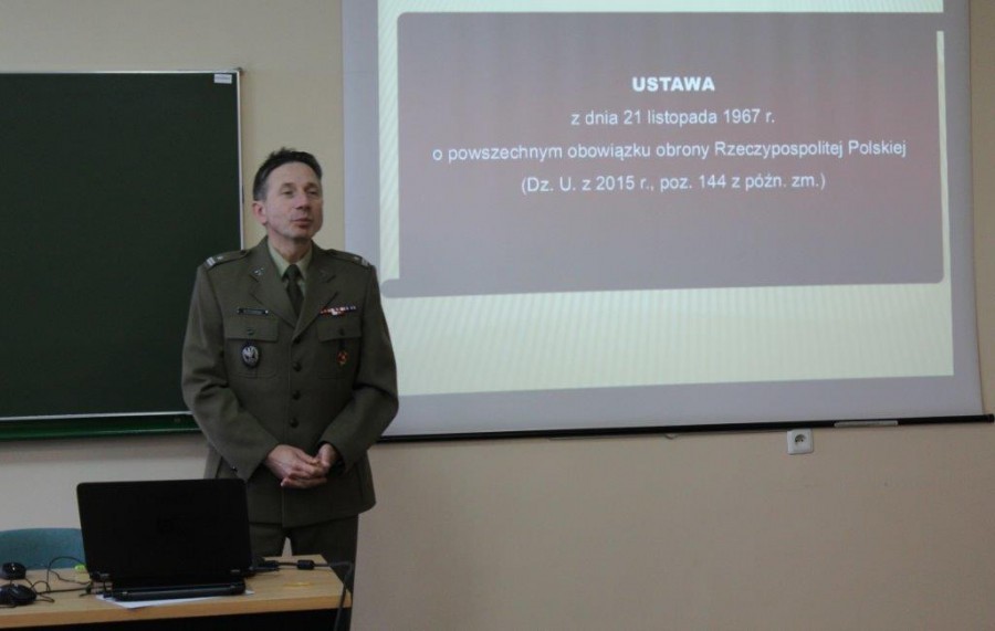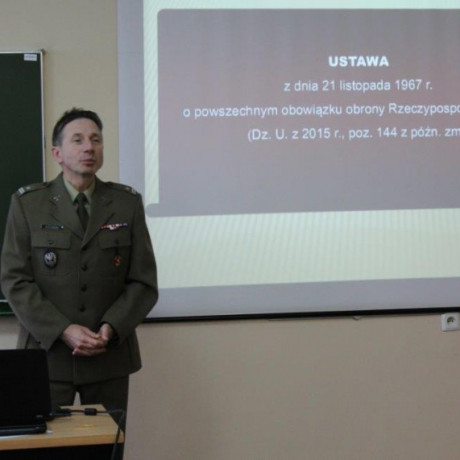 Wykład dla studentów stacjonarnych I roku bezpieczeństwa wewnętrznego przeprowadził 3 grudnia 2015 r. mjr Zbigniew Nizgorski, Szef Wydziału Zastępca Wojskowego Komendanta Uzupełnień Wojskowej Komendy Uzupełnień w Koninie.