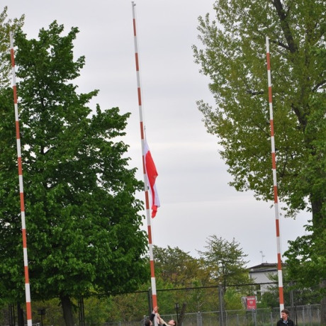 O godz. 12, dla przypomnienia, z jakiego powodu spotkali się uczestnicy Pikniku Patriotyczno-Sportowego, wciągnięto flagę na maszt.