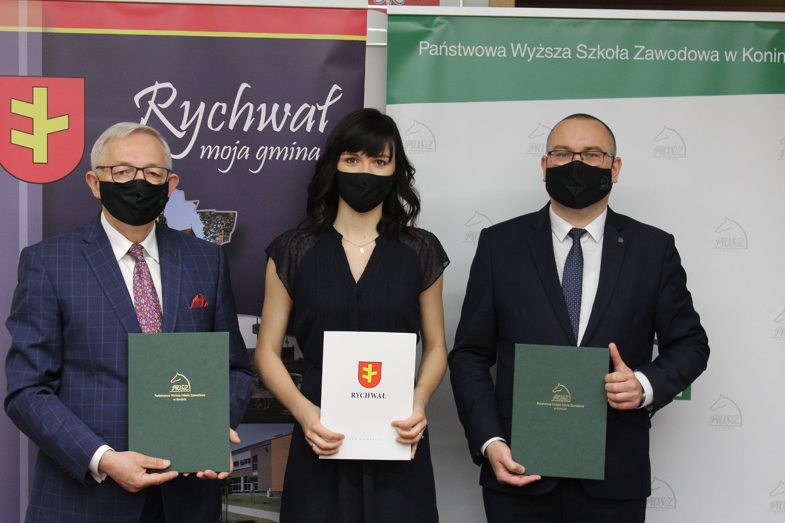 – Mam nadzieję, że to działanie zainspiruje kolejnych samorządowców subregionu konińskiego – powiedział dr hab. Artur Zimny, rektor PWSZ w Koninie, podpisując umowę o współpracy ze Stefanem Dziamarą, burmistrzem Rychwała. Dzięki niej Ewa Bartczak, nasza absolwentka i studentka jednocześnie, już 1 czerwca rozpocznie pracę w rychwalskim magistracie.