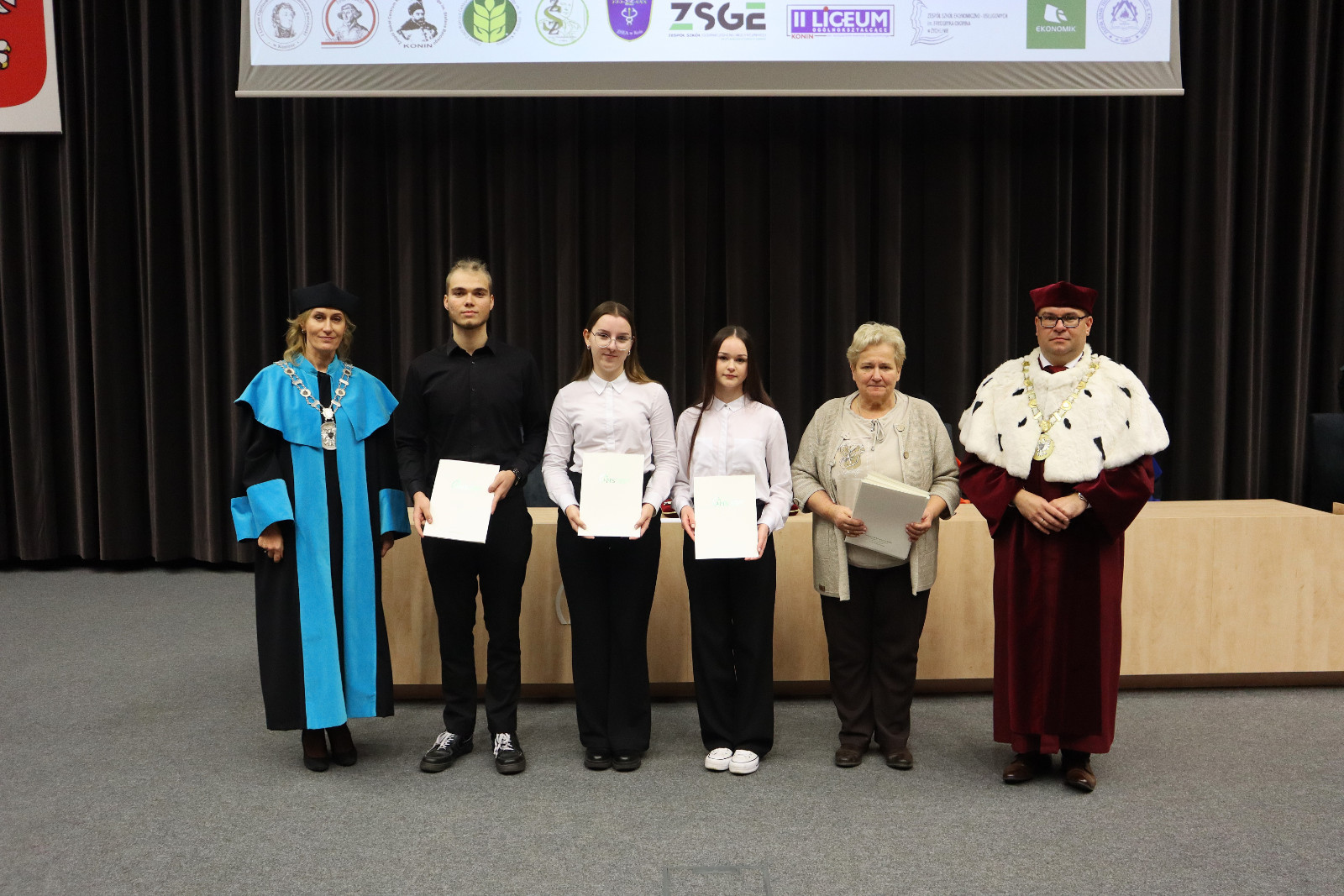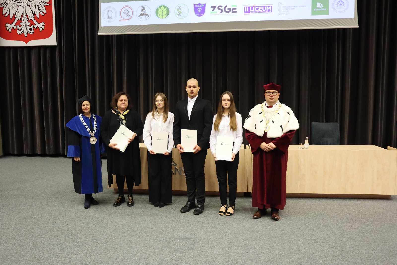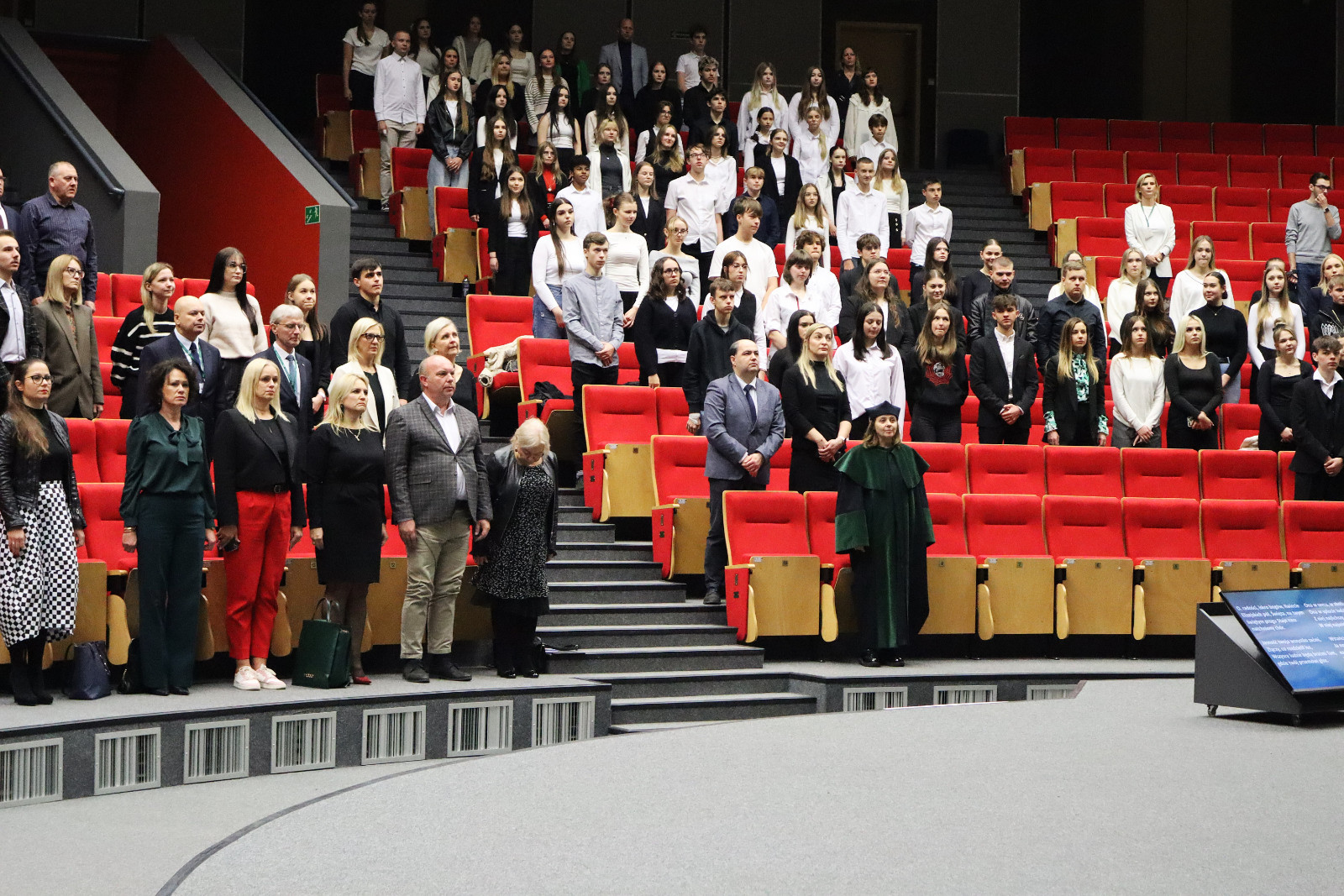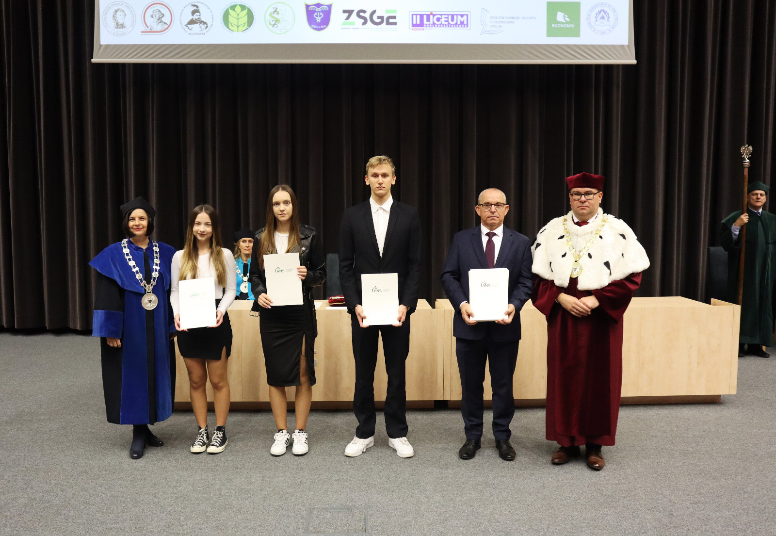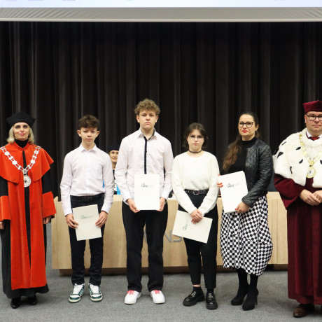 By procedurze przyjęcia na uczelnię stało się zadość, wytypowani uczniowie klas rozpoczynających w tym roku udział w programie odebrali nominacje z rąk rektora i dziekana właściwego wydziału, który ich klasę będzie pilotował.