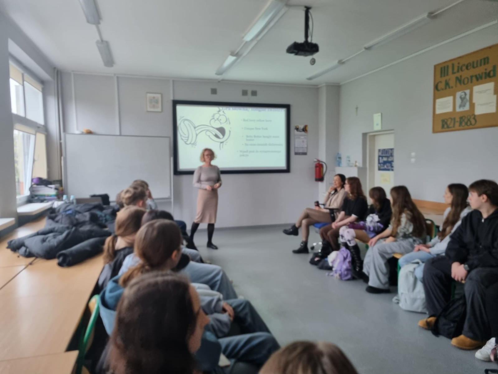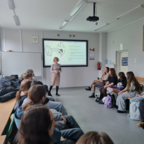 Uczniowie wysłuchali więc wykładu dr Eweliny Wesołek, która mówiła o kanibalizmie, uwzględniając jego kulturowe i kryminologiczne aspekty. Dr Ewa Pisula w prelekcji „Narzędzia promocji miast i regionów”, przybliżyła istotę marketingu terytorialnego i przedstawiła sposoby wykorzystywania do tego rzeczywistości wirtualnej (VR) i rzeczywistości rozszerzonej (AR). Z kolei Sylwia Maciejewska przygotowała warsztaty neurolingwistyczne „The brain and language. Gdzie mieszka język i jak podróżuje?". Kolejną propozycją, którą przedstawiciele naszej uczelni przygotowali dla uczniów, były warsztaty z komunikacji z wykorzystaniem technik dramowych i teatralnych, które poprowadziła Katarzyna Krakowian-Płoszka. O sztuce samoobrony werbalnej, czyli o tym, jak bronić się przed atakami słownymi, mówił z kolei Marek Chorzewski. Na zakończenie Małgorzata Chybicka wystąpiła z wykładem „Język żyrafy czy język szakala? O sztuce porozumiewania się bez przemocy”.
