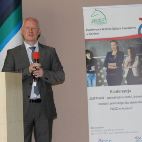 Konferencja była podsumowaniem projektu, który miał jeszcze lepiej przygotowywać absolwentów PWSZ w Koninie do wejścia na rynek pracy. W trakcie projektu „SUSTMAN – przedsiębiorczość, zrównoważony rozwój i produkcja dla studentów PWSZ w Koninie” zajęcia prowadzone były przez ekspertów z Polski i Norwegii, po polsku i angielsku, z wykorzystaniem nowoczesnych technologii (laptopy, tablice multimedialne). Głównym celem projektu było przygotowanie młodych ludzi do wyzwania przed jakim stoi każdy absolwent uczelni – jest nim znalezienie pracy. Może to być samozatrudnienie lub praca w firmie. Od kandydatów wymaga się rozmaitych kompetencji, przede wszystkim zawodowych, ale także samoorganizacyjnych i interpersonalnych. Jest to uwarunkowane charakterem pracy oraz branży, w której funkcjonuje zakład. Coraz więcej firm wdraża technologie przyjazne środowisku i realizuje zasady zrównoważonego rozwoju. Natomiast niewiele uczelni w Polsce kształci studentów tak, żeby spełniali oczekiwania pracodawców w tym zakresie. Tymczasem to tendencja, która rozwija się dynamicznie w Europie i w Polsce, m.in. w wyniku realizacji wytycznych Unii Europejskiej. Studenci PWSZ w Koninie, którzy wzięli udział w projekcie SUSTMAN, zdobyli wiedzę w tym zakresie oraz oczekiwane przez pracodawców kompetencje miękkie i komunikacyjne. Efekty zrealizowanego projektu to m.in.: