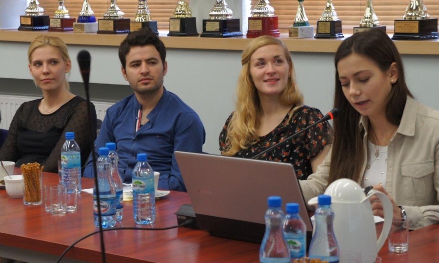 Podczas spotkania konińskie studentki filologii angielskiej: Andrea Jakubowska i Andżelika Knyszyńska opowiedziały o uczelni oraz przedstawiły możliwe formy spędzania czasu wolnego w Koninie.