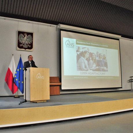 Pierwszaków powitał dr hab. Artur Zimny, prof. i rektor ANS w Koninie. Krótko przedstawił strukturę organizacyjną uczelni i bazę dydaktyczną, jednak przede wszystkim podkreślił znaczenie racjonalnego podejścia do nauki oraz pilności. Zachęcał do ubiegania się o różnego rodzaju stypendia, a w przyszłości do korzystania z programu Erasmus+.