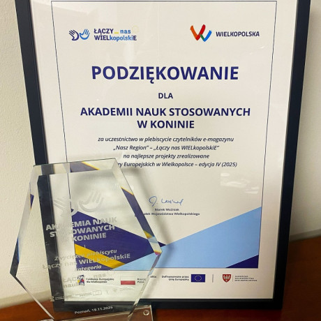 Statuetkę za najlepszy projekt w kategorii „Łączy nas… nauka” w plebiscycie „Łączy nas WIELkopolskiE” odebrał dr hab. Artur Zimny, prof. i rektor ANS w Koninie. Gala finałowa odbyła się 19 listopada w studiu TVP Poznań.