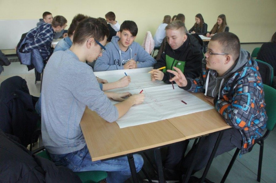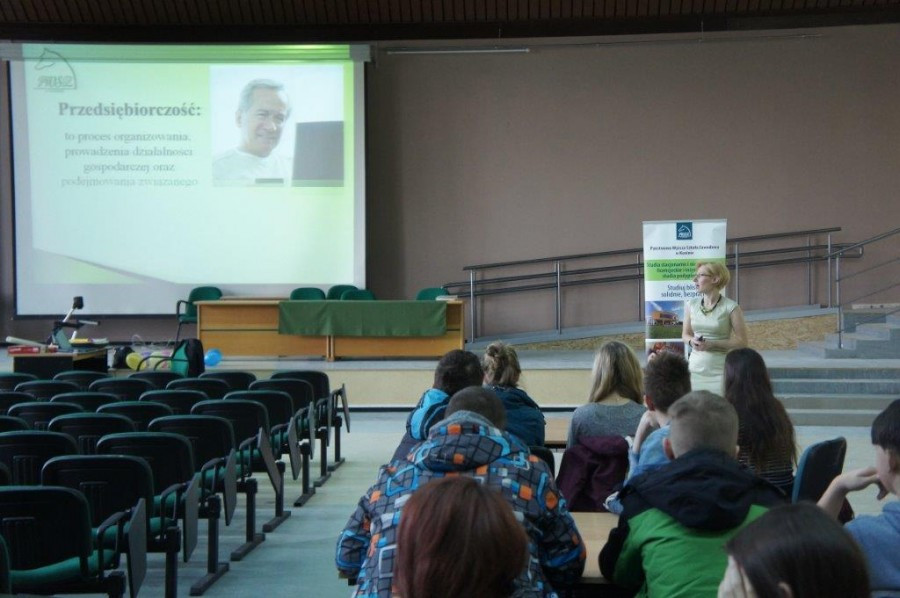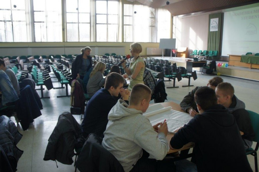 O tematyce zajęć AMS decyduje profil zapraszanej klasy, najczęściej ze szkoły ponadgimnazjalnej. Są jednak takie dziedziny, o których warto mieć pojęcie już wcześniej, np. o przedsiębiorczości. Gimnazjaliści z Koła uczestniczyli więc w wykładach i warsztatach poświęconych właśnie przedsiębiorczości i logistyce. Dr Agnieszka Szymankowska z ich aktywnym udziałem przeprowadziła diagnozę cech dynamicznego zarządcy zakładu, firmy. Młodzi ludzie w grupach na dużych kartonach wypisywali m.ni. atrybuty takiej osoby. Szukali ich również u siebie.