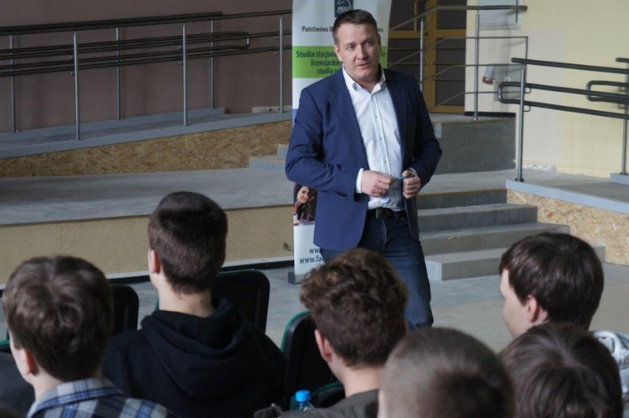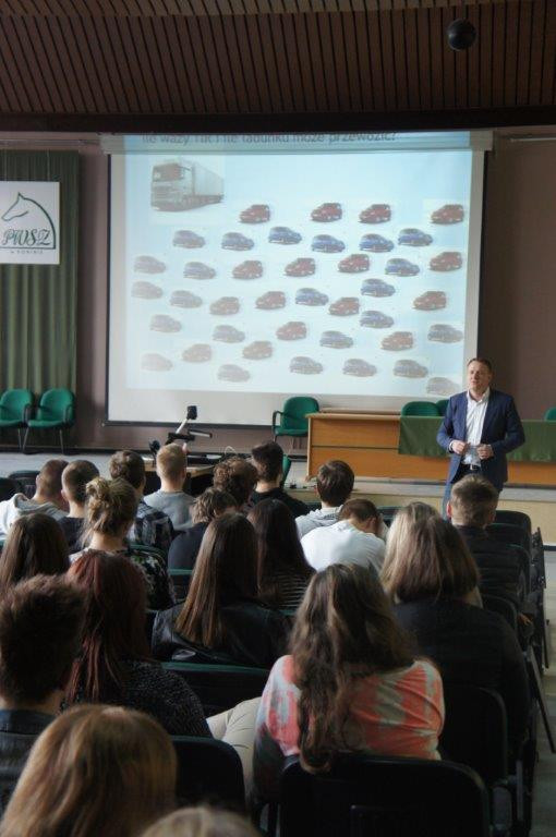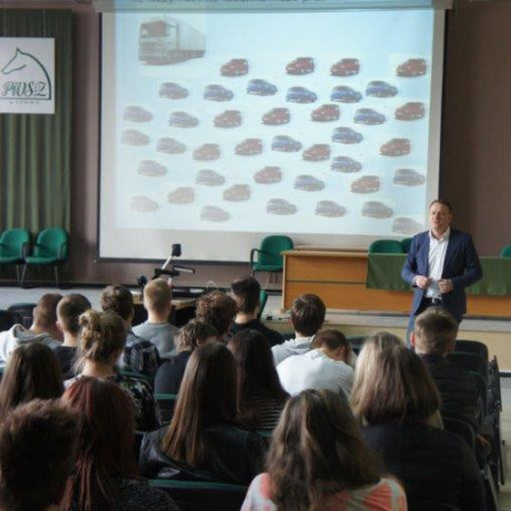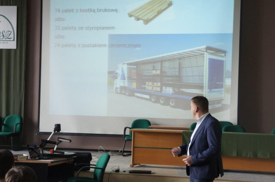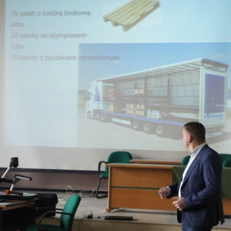W części spotkania poświęconego logistyce, które przeprowadził dr Szymon Zimniewicz, studenci AMS nie tylko poznali znaczenie tej szybko rozwijającej się gałęzi gospodarki, ale zastanawiali się, na przykład, ile różnego rodzaju towarów można przewieźć większymi i mniejszymi pojazdami oraz jak najdogodniej przeprawić je na drugi koniec świata.