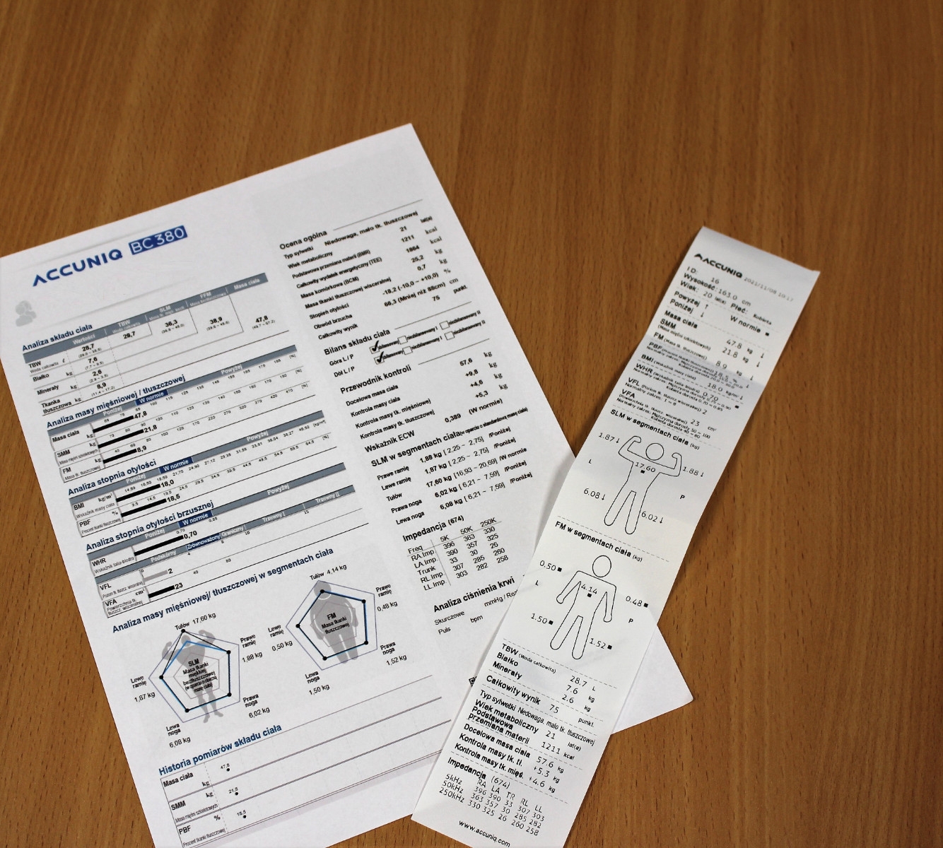 Za jednym zamachem zmierzy masę ciała, masę mięśni szkieletowych, masę tkanki tłuszczowej, zarówno tej widocznej, potocznie nazywanej „oponką”, jak i tej ukrytej w najgłębszych zakamarkach ciała. Co więcej, zanalizuje je wraz z wieloma innymi parametrami, i to w rozbiciu na poszczególne segmenty ciała.