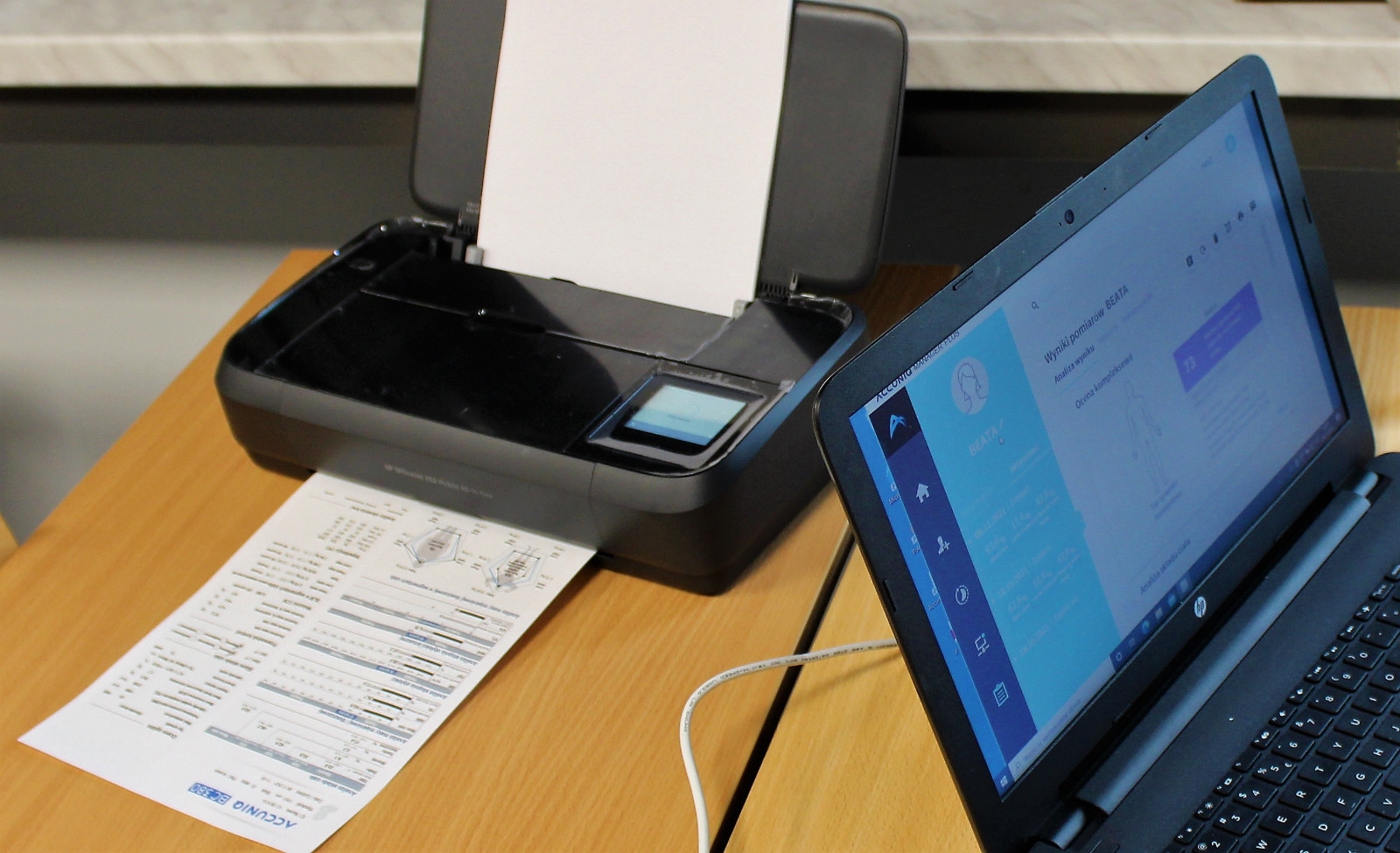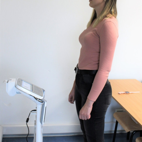 Studentki I roku zdrowia publicznego (ZP) pracę z nim bardzo chwalą. Od początku października uczą się jego obsługi, i – co istotniejsze – analizy danych. Najpierw na sobie. Ostatnie pomiary robiły dwa tygodnie temu. Studentka Natalia Sekrecka bosymi stopami staje na metalowym podeście, a w ręce bierze metalowe uchwyty przypominające rowerowe manetki. Po chwili z drukarki wychodzi kartka pełna danych. – O! Prawa noga mi przytyła o pięć gramów – śmieje się, patrząc na swój wydruk. – Tę niewielką różnicę da się zauważyć, ponieważ analizator zachowuje wyniki poprzednich badań i wskazuje zmiany, jakie zaszły w stosunku do nich – wyjaśnia prowadząca zajęcia Ewa Grabarczyk-Szewczyk, menedżerka kierunku dietetyka.