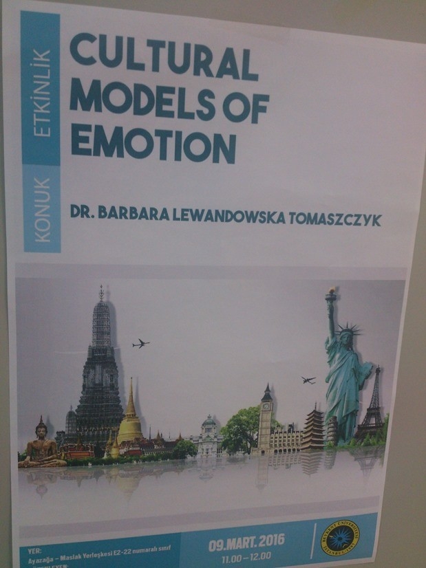 Zajęcia ze wszech miar udane. Studenci programu magisterskiego z przekładu – to wymarzona grupa, jakby równoległa do moich seminarium magisterskich na filologii angielskiej w PWSZ w Koninie. Kompetentni, oczytani, aktywni w pytaniach i debacie – z przyjemnością dyskutowaliśmy o strategiach i wyborach translatorskich z przykładami z angielskiego, polskiego i naturalnie tureckiego! Inne grupy, które spotkałam – to grupy językowe i literackie. Analizy kulturowych aspektów pojęć wyrażających emocje i uczucia w różnych językach – to temat, który fascynuje wszystkich i pozwala na prezentacje perspektywy językowej i kulturowej.