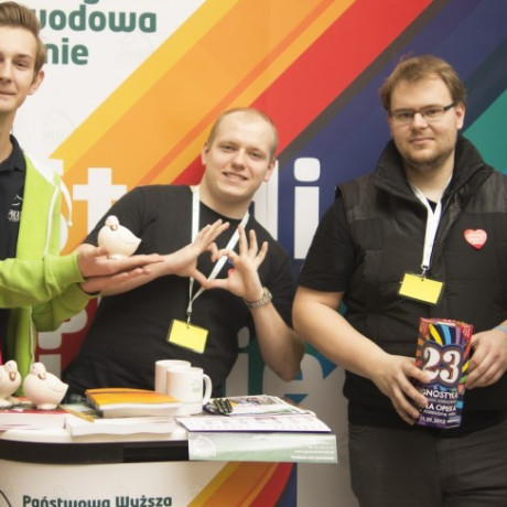 PWSZ na swoim stoisku, przygotowanym przez studentów-wolontariuszy, miała dwa stanowiska do malowania: na jednym dzieci mogły się poddać malowaniu twarzy przez studentki, na drugim to dzieciaki malowały na kartkach, co im podpowiadała wyobraźnia. Dla chętnych do zasilenia uczelnianej puszki WOŚP studentki własnoręcznie upiekły ciasto. Ostatecznie wpłynęło do niej niemal 800 zł.