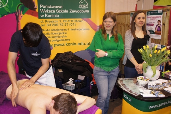 Stoisko naszej Uczelni oblegali licznie maturzyści i uczniowie pozostałych klas szkół ponadgimnazjalnych. Informacji wszystkim zainteresowanym udzielali pracownicy Działu Promocji oraz studenci z Samorządu Studentów PWSZ w Koninie, którzy licznie przybyli na Forum. Dodatkowo na scenie wystąpili studenci z Wydziału Kultury Fizycznej i Ochrony Zdrowia, którzy pod kierunkiem doc. dr Edyty Bielik, Prodziekana WKFiOZ oraz doc. dr Janusza Kwiecińskiego, Prodziekana WST, przygotowali niesamowity pokaz sportowy.