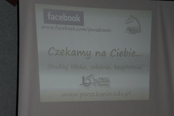 W okresie od grudnia do końca lutego 2013 r. przedstawiciele PWSZ w Koninie odwiedzili blisko 30 szkół w Koninie i powiecie konińskim oraz w powiatach tureckim, słupeckim, kolskim i włocławskim. Łącznie w spotkaniach wzięło udział ponad 1500 uczniów. Przeprowadzono 50 spotkań z młodzieżą, które miały charakter prezentacji połączonej z pokazem multimedialnym.