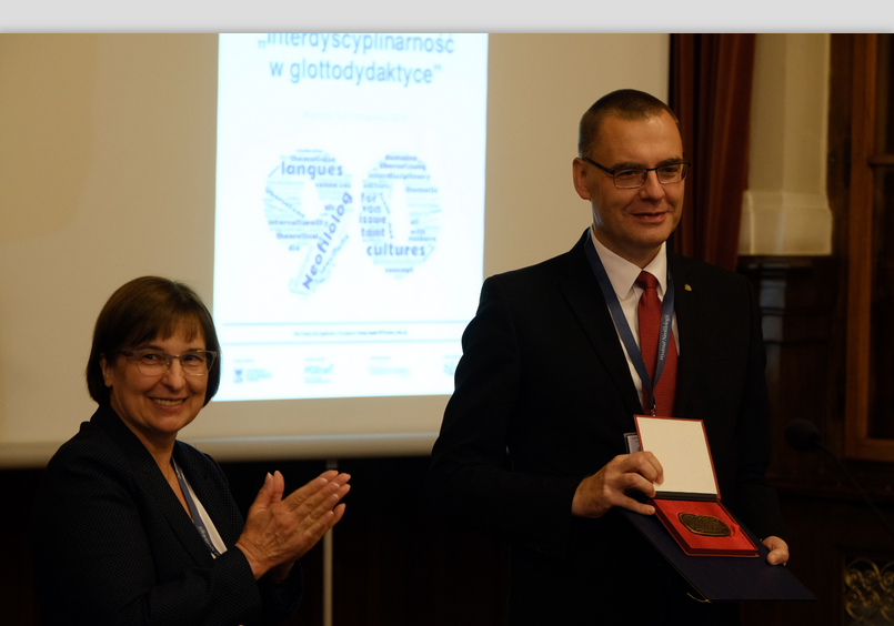 Podczas szczególnej uroczystości prof. Mirosław Pawlak otrzymał Medal im. Profesora Ludwika Zabrockiego za wybitne osiągnięcia o charakterze organizacyjnym i popularyzatorskim na rzecz Polskiego Towarzystwa Neofilologicznego.