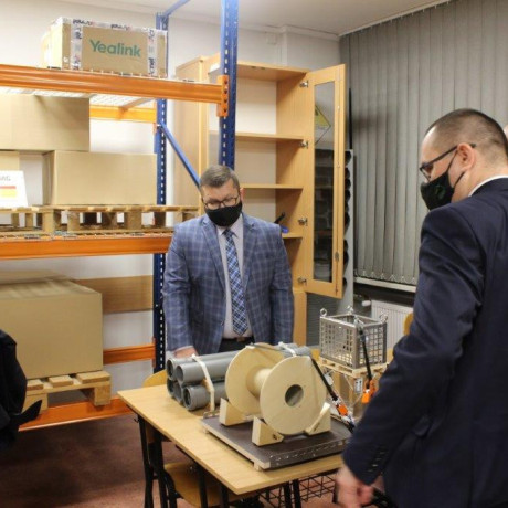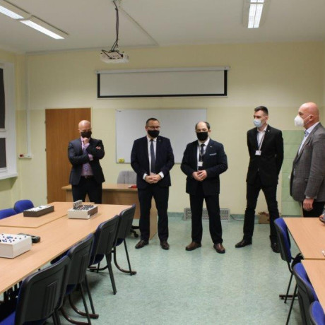 Po obradach, które odbyły się 2 grudnia, rektorzy Janusz Poła, prof. PWSZ w Lesznie, dr hab. Donat Mierzejewski, prof. PUSS (Piła) oraz prorektorzy dr Tatiana Manasterska, prof. AK (Kalisz) i dr inż. Krzysztof Danielewicz (PSW w Gnieźnie), udali się pod przewodnictwem gospodarza na zwiedzanie laboratoriów inżynieryjno-technicznych i nowo wyposażonych sal dydaktycznych dla kierunków logistyka oraz zarządzanie i inżynieria produkcji.