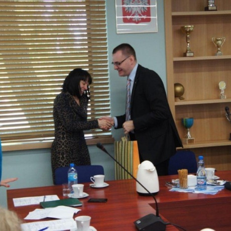Delegację oficjalnie przywitał prof. dr. hab. Mirosław Pawlak, rektor, dr Jerzy Jasiński, prorektor ds. kształcenia, dr Artur Zimny, dziekan Wydziału Społeczno-Humanistycznego oraz mgr Patrycja Herman-Wróbel, kierownik Biura Rektora.