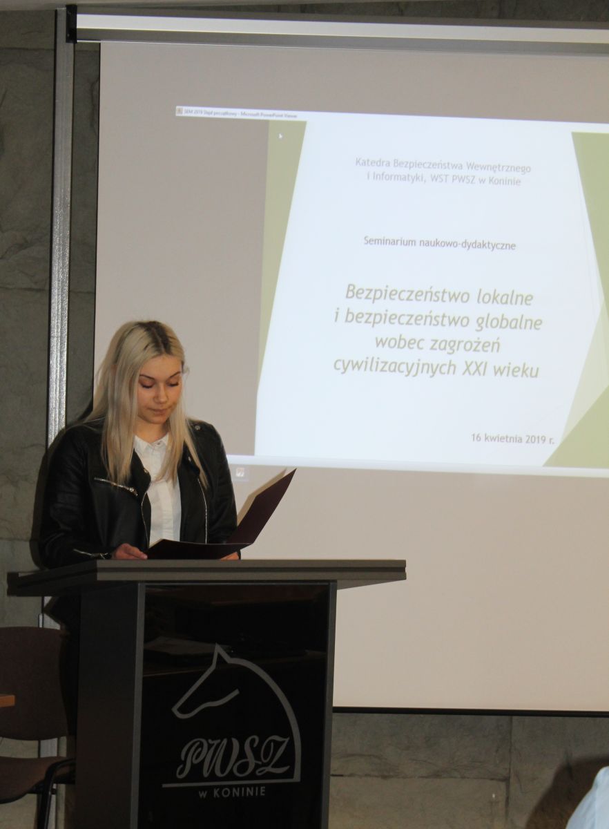 Bezpieczeństwo lokalne i bezpieczeństwo globalne wobec zagrożeń cywilizacyjnych XXI wieku było tematem seminarium naukowo-dydaktycznego, które miało miejsce 16 kwietnia 2019 r. w PWSZ w Koninie. Organizatorem seminarium była Katedra Bezpieczeństwa Wewnętrznego i Informatyki.