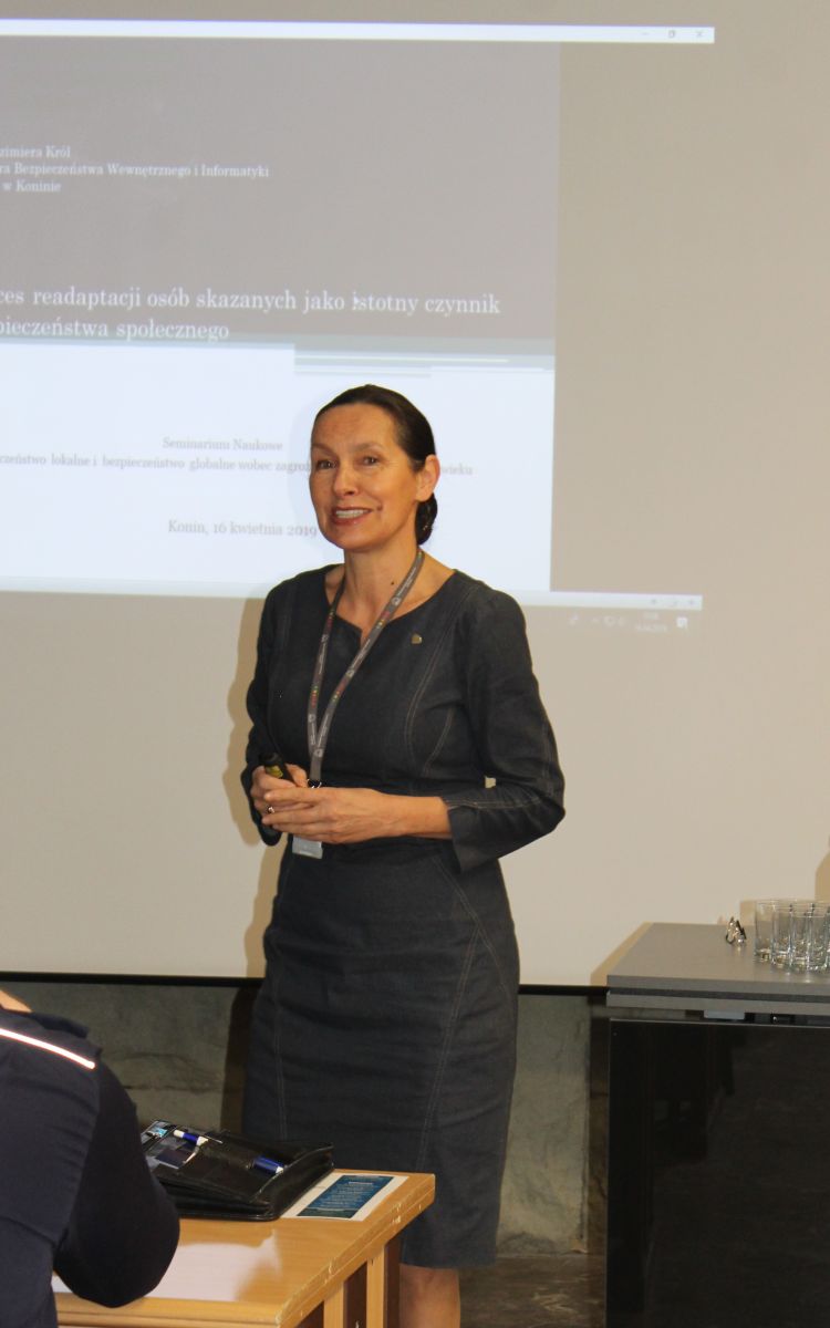 Jako pierwsza głos zabrała Pani dr Kazimiera Król, wykładowca Katedry Bezpieczeństwa Wewnętrznego i Informatyki PWSZ w Koninie zaprezentowała wystąpienie pt. Proces readaptacji osób skazanych jako istotny czynnik bezpieczeństwa społecznego. Kolejnym prelegentem był Pan nadkom. Mariusz Jaworski, I Zastępca Komendanta Miejskiego Policji w Koninie, który poruszył temat bezpieczeństwa w mieście i powiecie konińskim na przykładzie realizacji programu profilaktycznego konińskiej Policji pn. „Razem dla Bezpieczeństwa”. Z referatem pt. Bezpieczeństwo pożarowe w pomieszczeniach typu ESCAPE ROOM wystąpił Pan kpt. mgr inż. Sebastian Andrzejewski, Naczelnik Wydziału Kontrolno-Rozpoznawczego Komendy Miejskiej Państwowej Straży Pożarnej w Koninie. Następnie głos zabrała Pani Brygida Urbaniak, studentka III roku kierunku Bezpieczeństwo Wewnętrzne, która przedstawiła kwestię terroryzmu jako zewnętrznego i wewnętrznego zagrożenia ustrojowego.